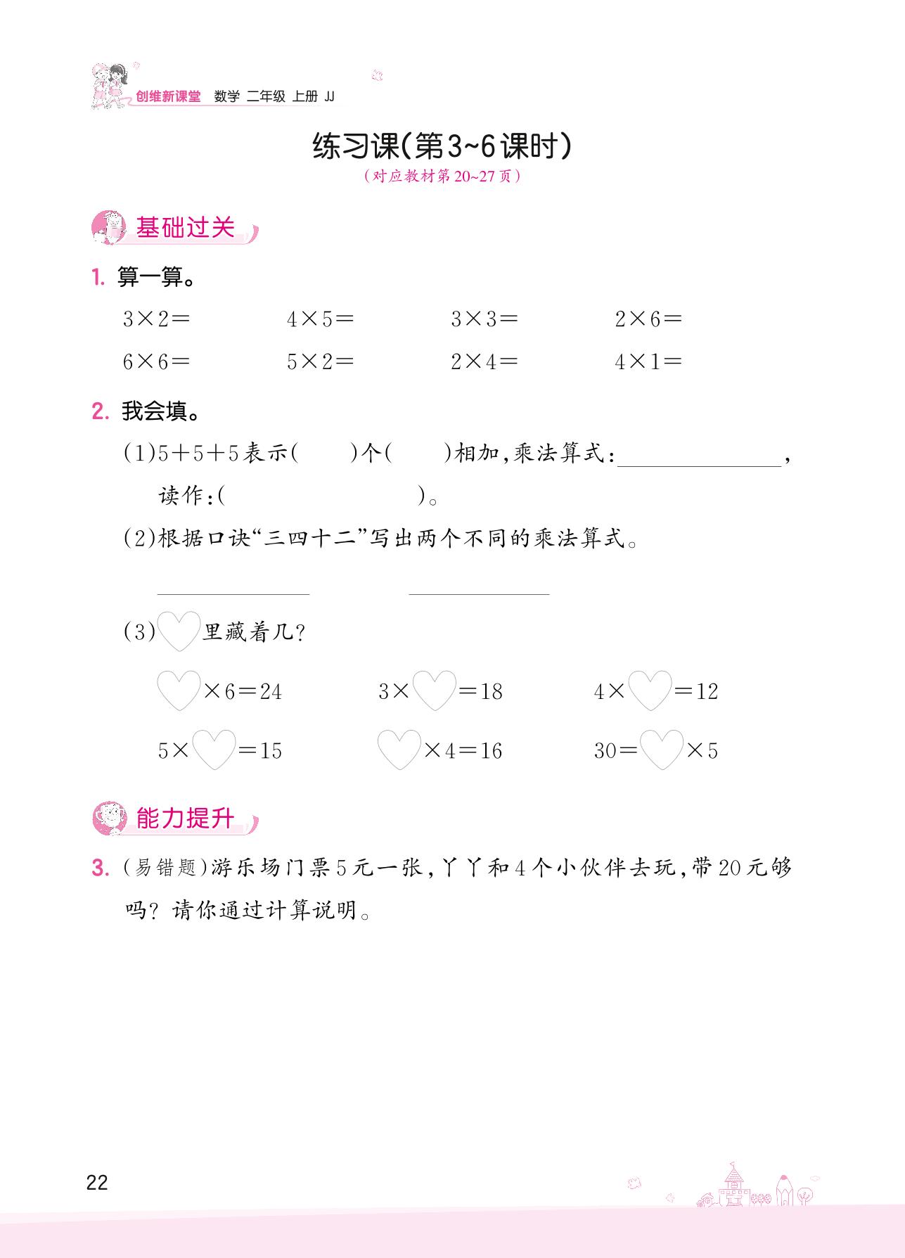 2022上册二年级数学冀教版 三 表内乘法(一)——练习课(第3~6课时)