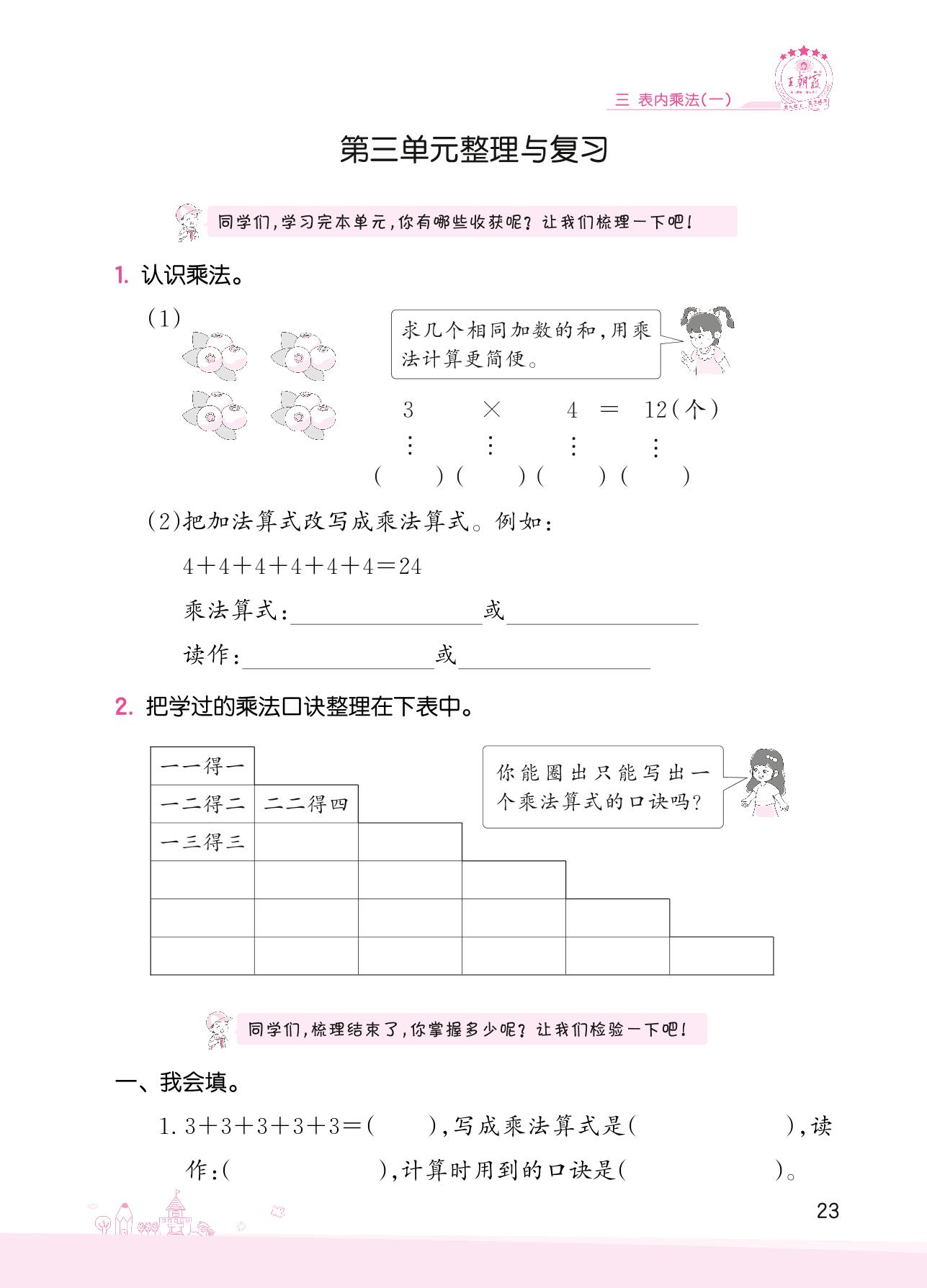2022上册二年级数学冀教版 三 表内乘法(一)——第三单元整理与复习