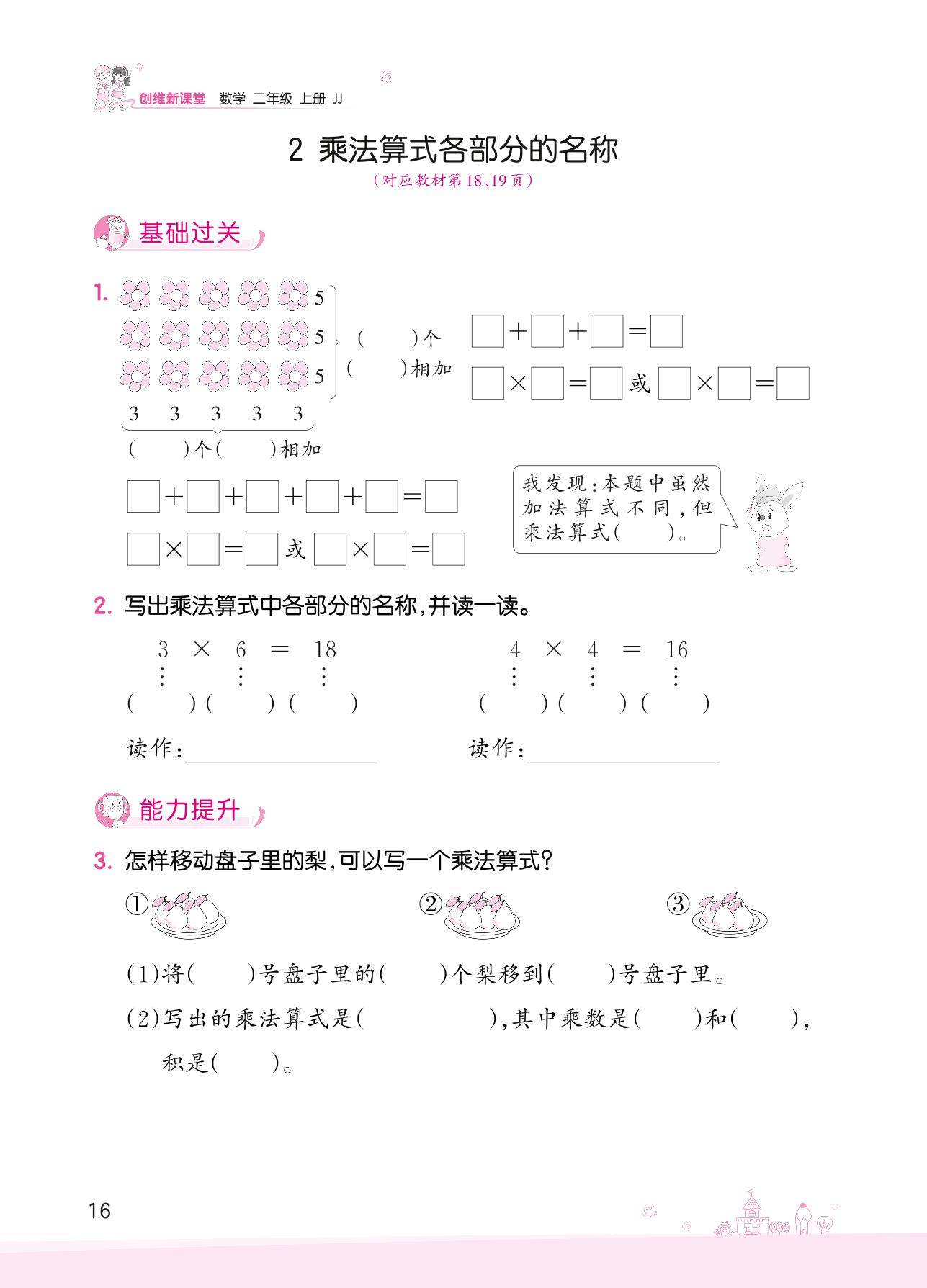 2022上册二年级数学冀教版 三 表内乘法(一)——2 乘法算式各部分的名称
