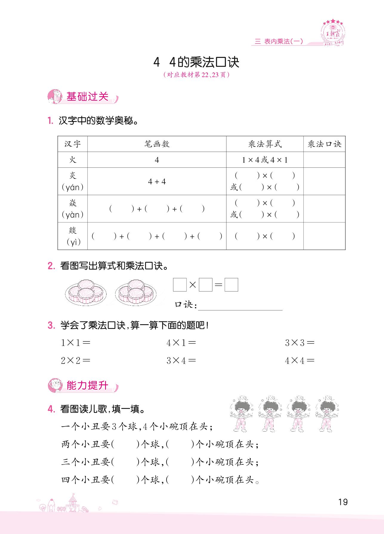 2022上册二年级数学冀教版 三 表内乘法(一)——4 4的乘法口诀