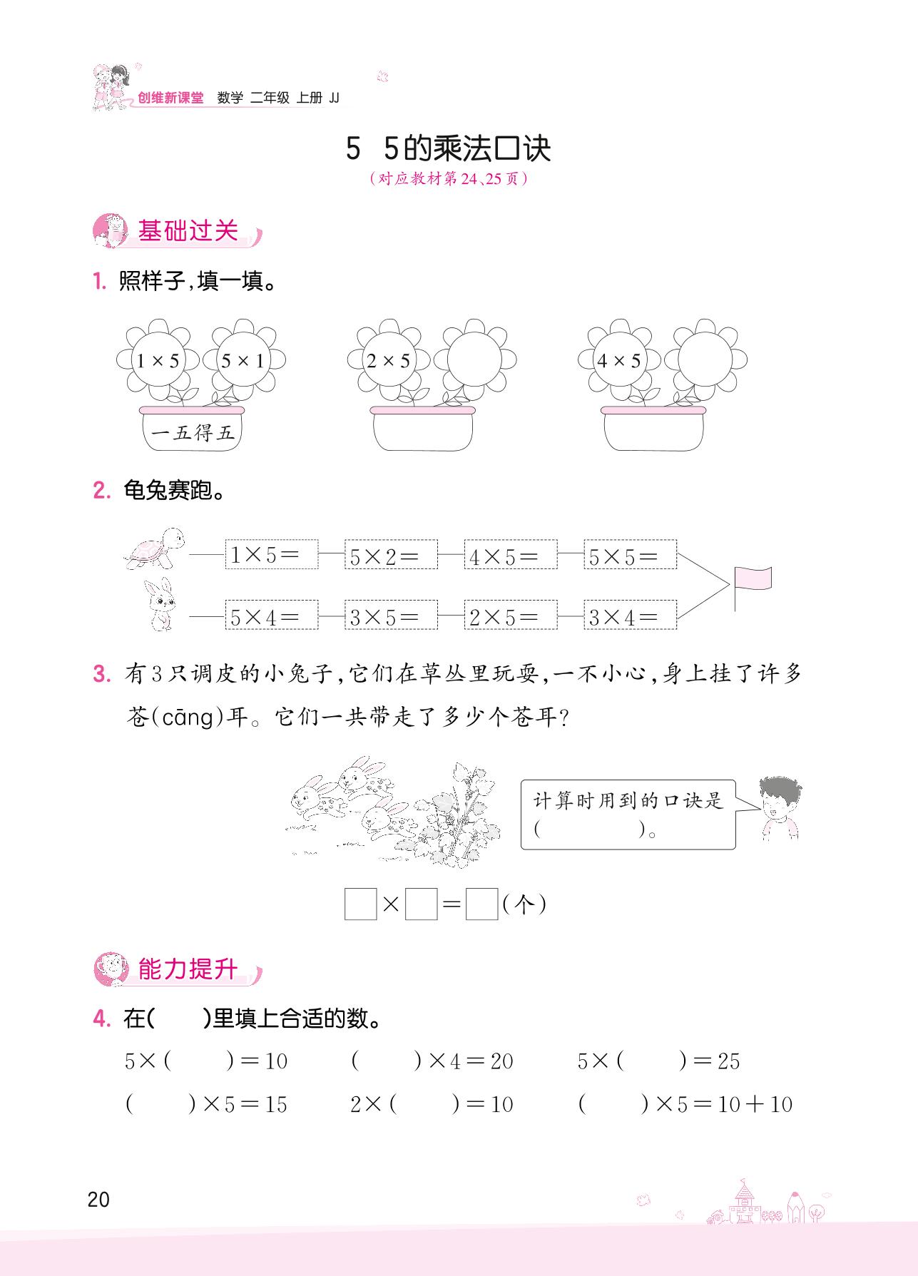 2022上册二年级数学冀教版 三 表内乘法(一)——5 5的乘法口诀