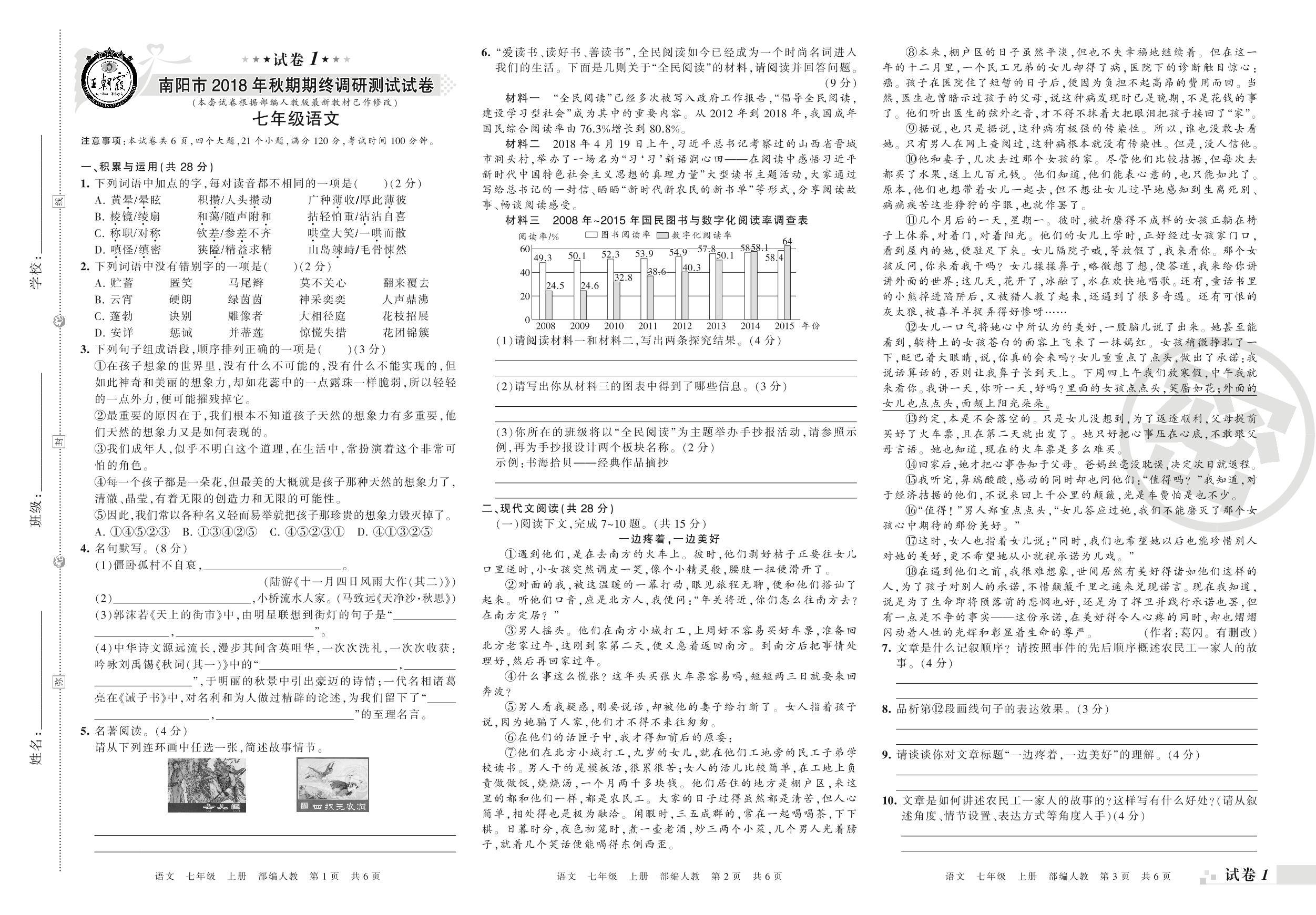 2018-2019学年第一学期南阳市七年级语文试卷(人教版)【1】