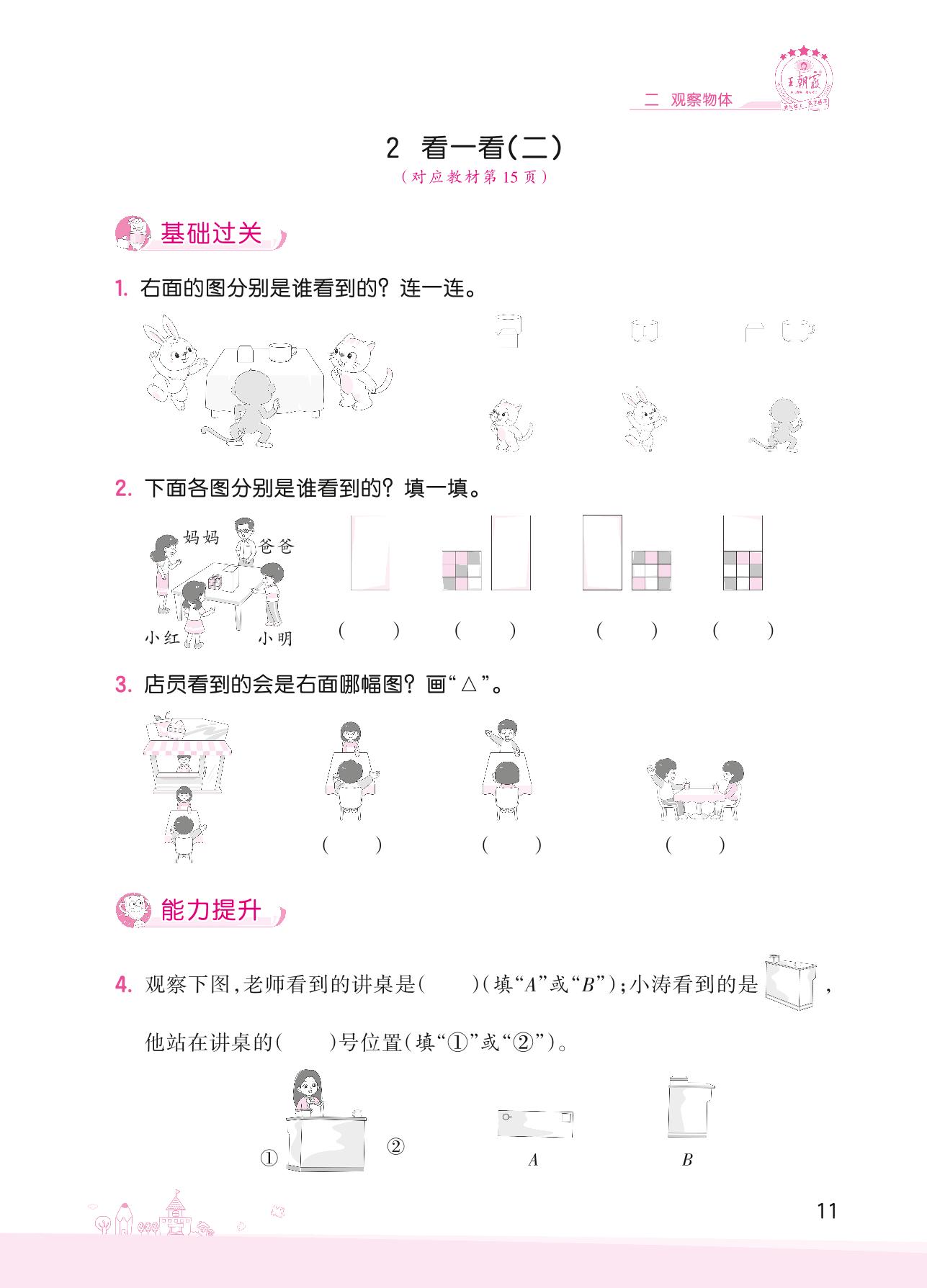 2022上册三年级数学北师版 二 观察物体——2 看一看(二)