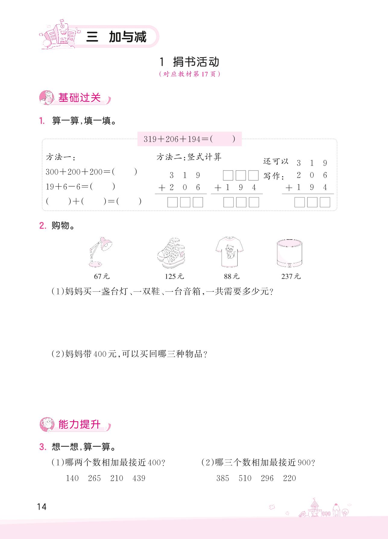 2022上册三年级数学北师版 三 加与减——1 捐书活动
