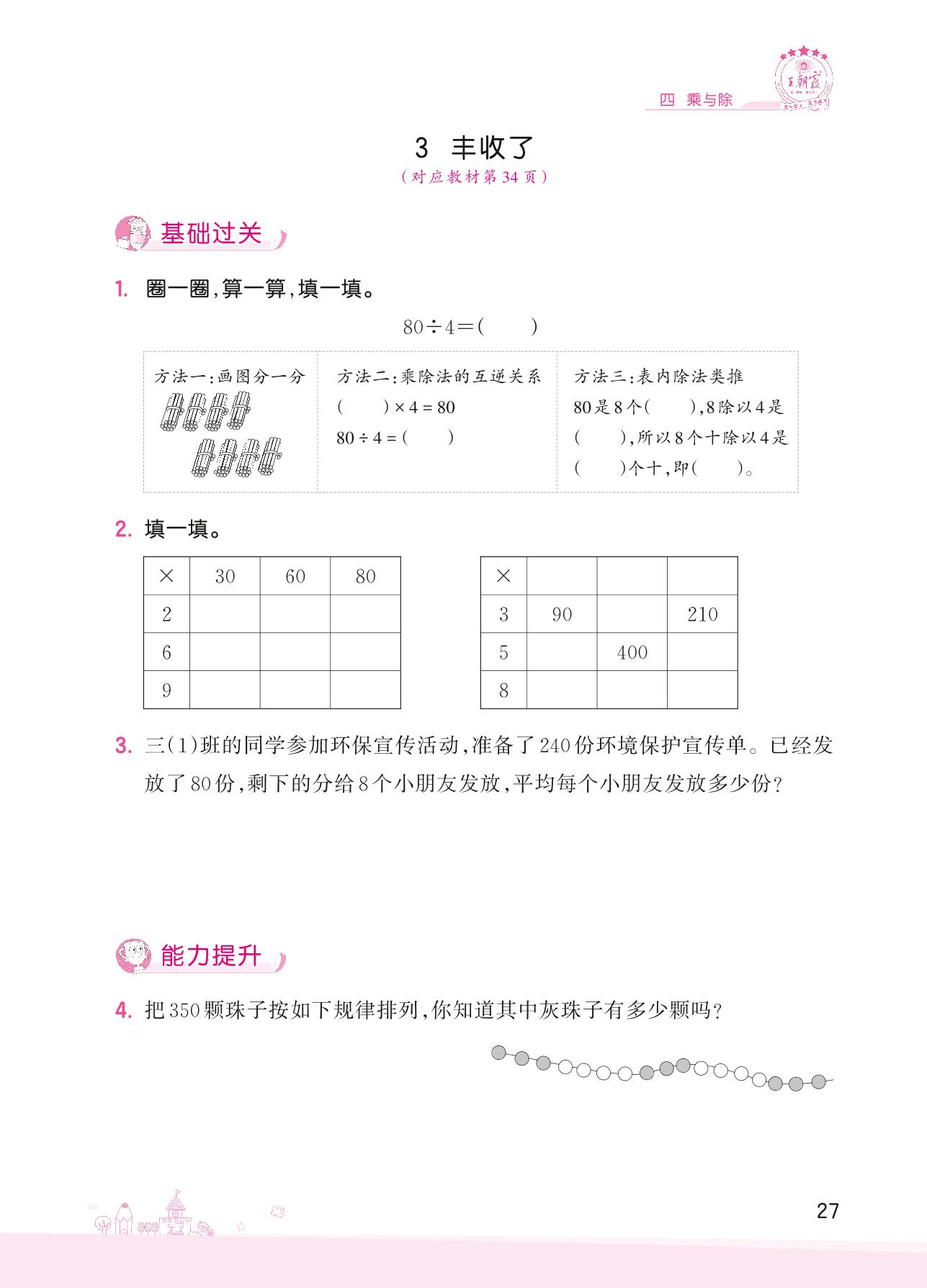 2022上册三年级数学北师版 四 乘与除——3 丰收了