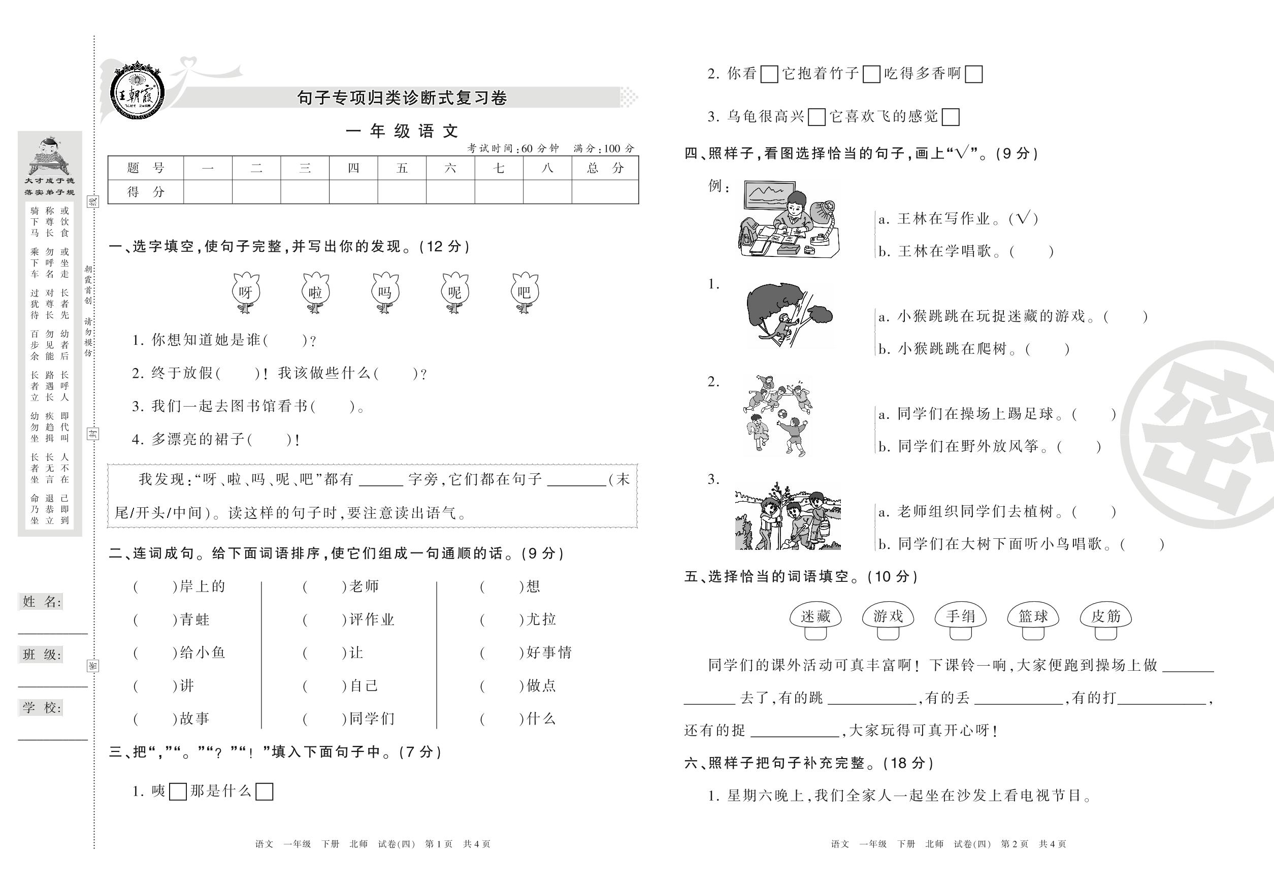王朝霞期末专项卷一年级下册语文(北师版)_R210731183933【4】