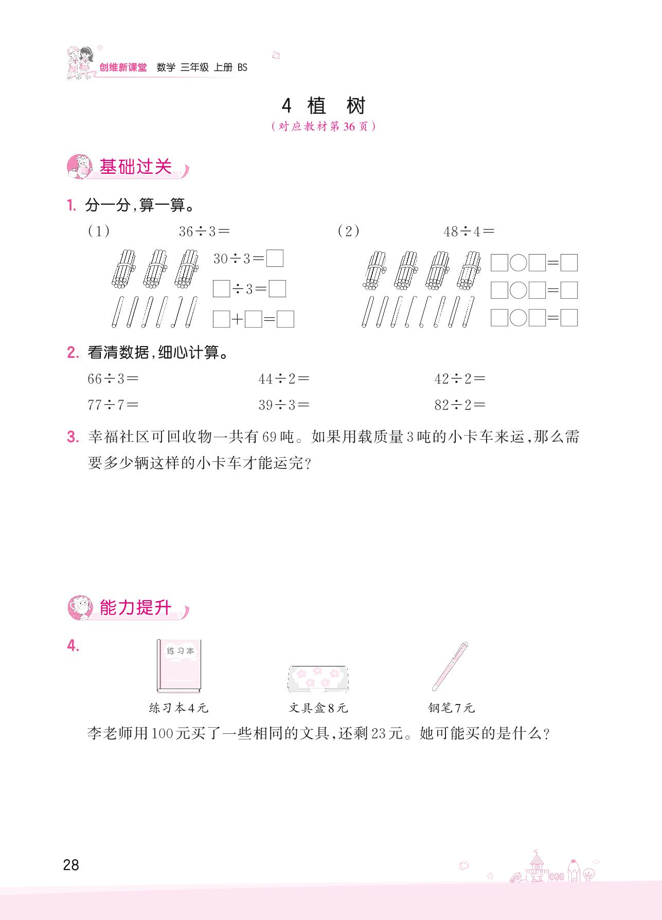 2022上册三年级数学北师版 四 乘与除——4 植树