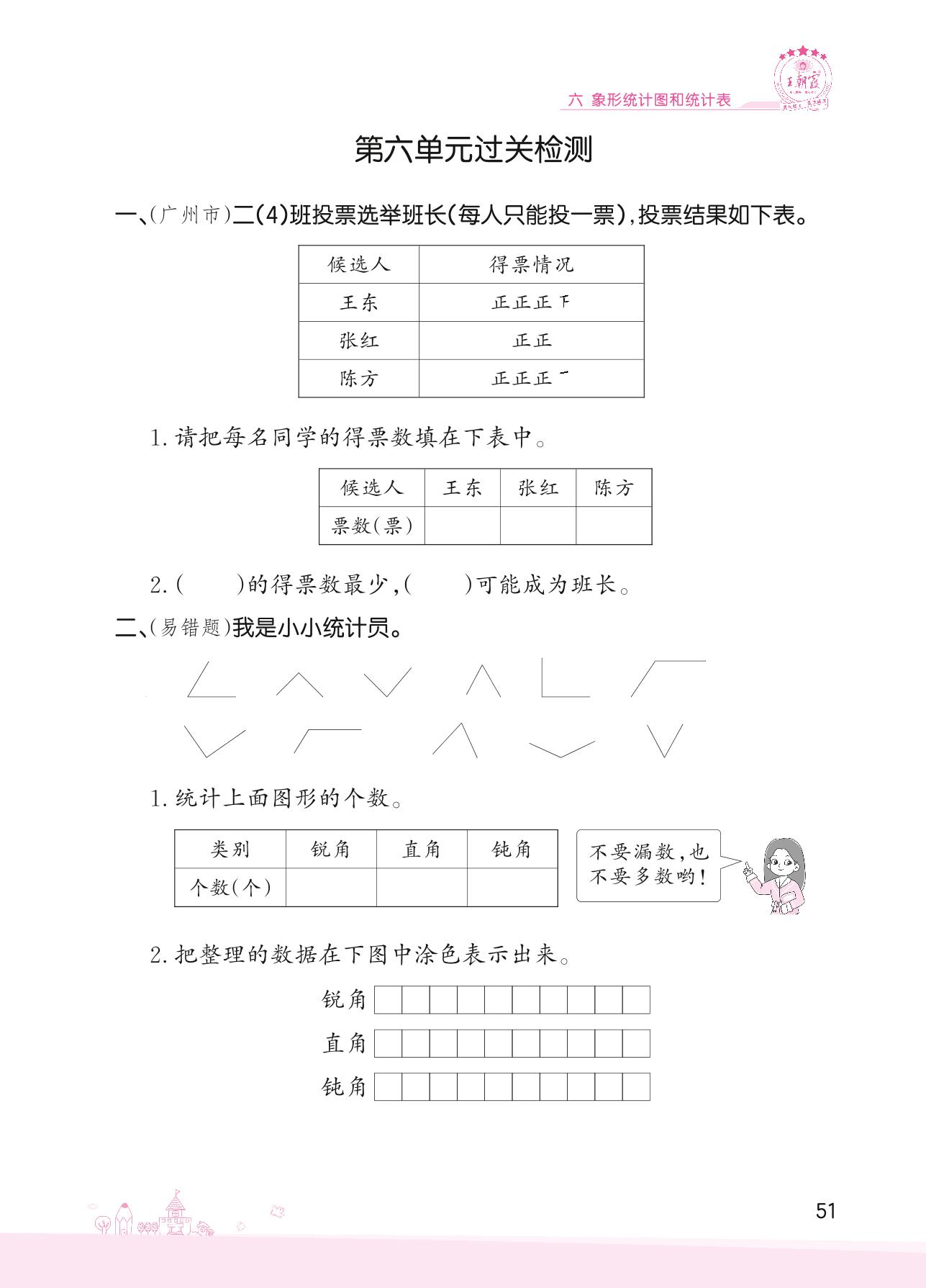 2022上册二年级数学冀教版 六 象形统计图和统计表——第六单元过关检测