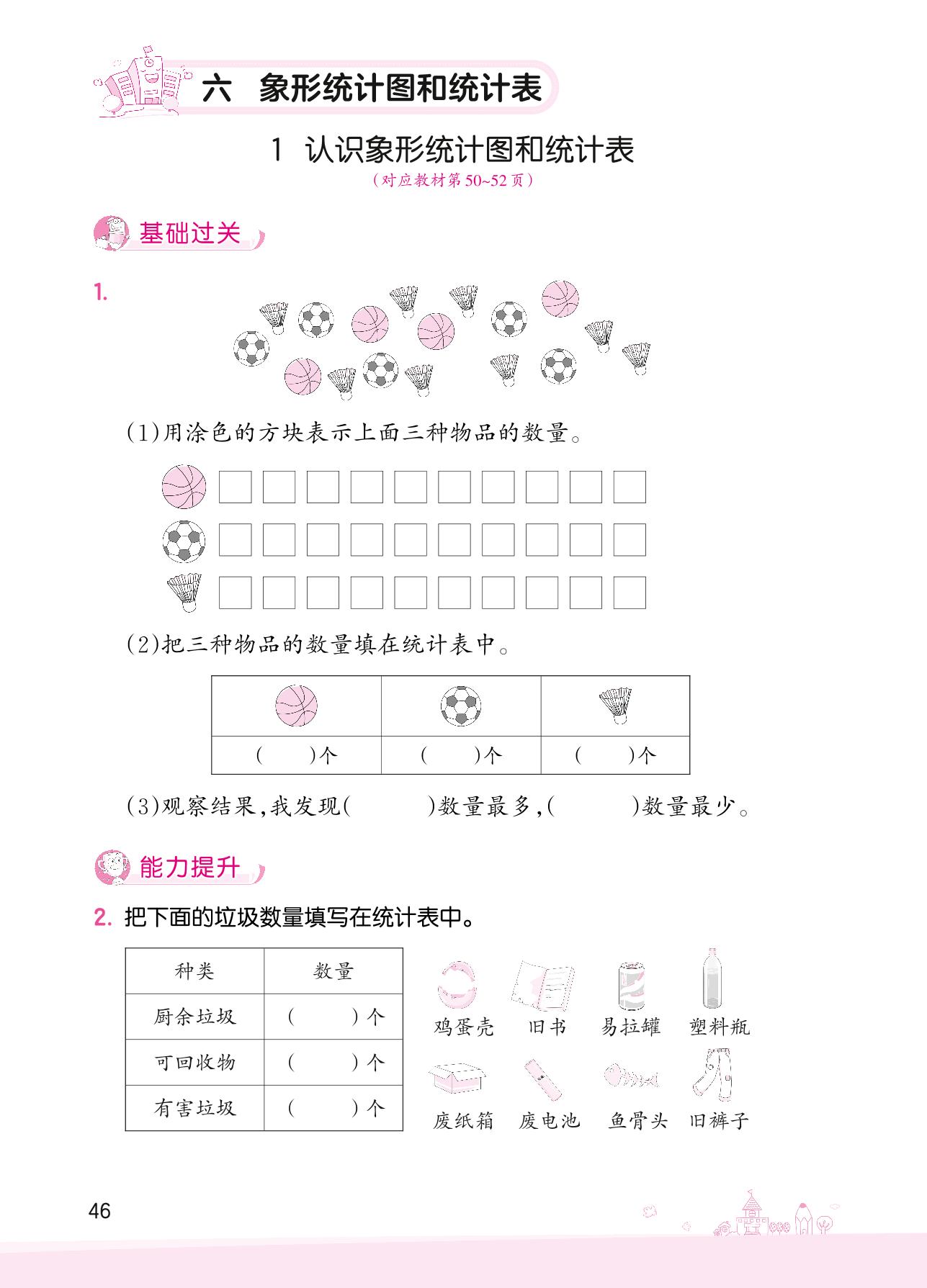 2022上册二年级数学冀教版 六 象形统计图和统计表——1 认识象形统计图和统计表
