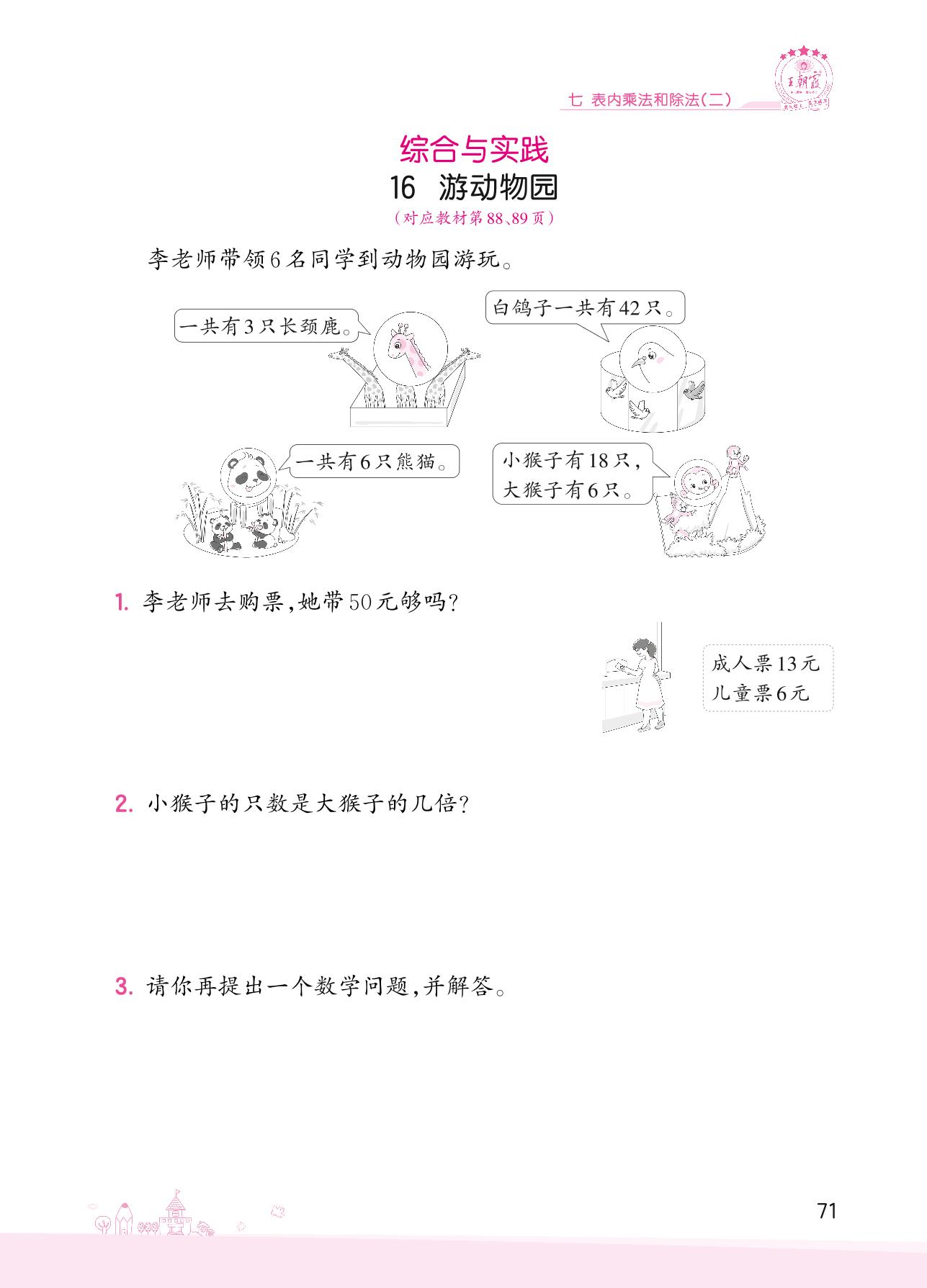 2022上册二年级数学冀教版 七 表内乘法和除法(二)——16 游动物园