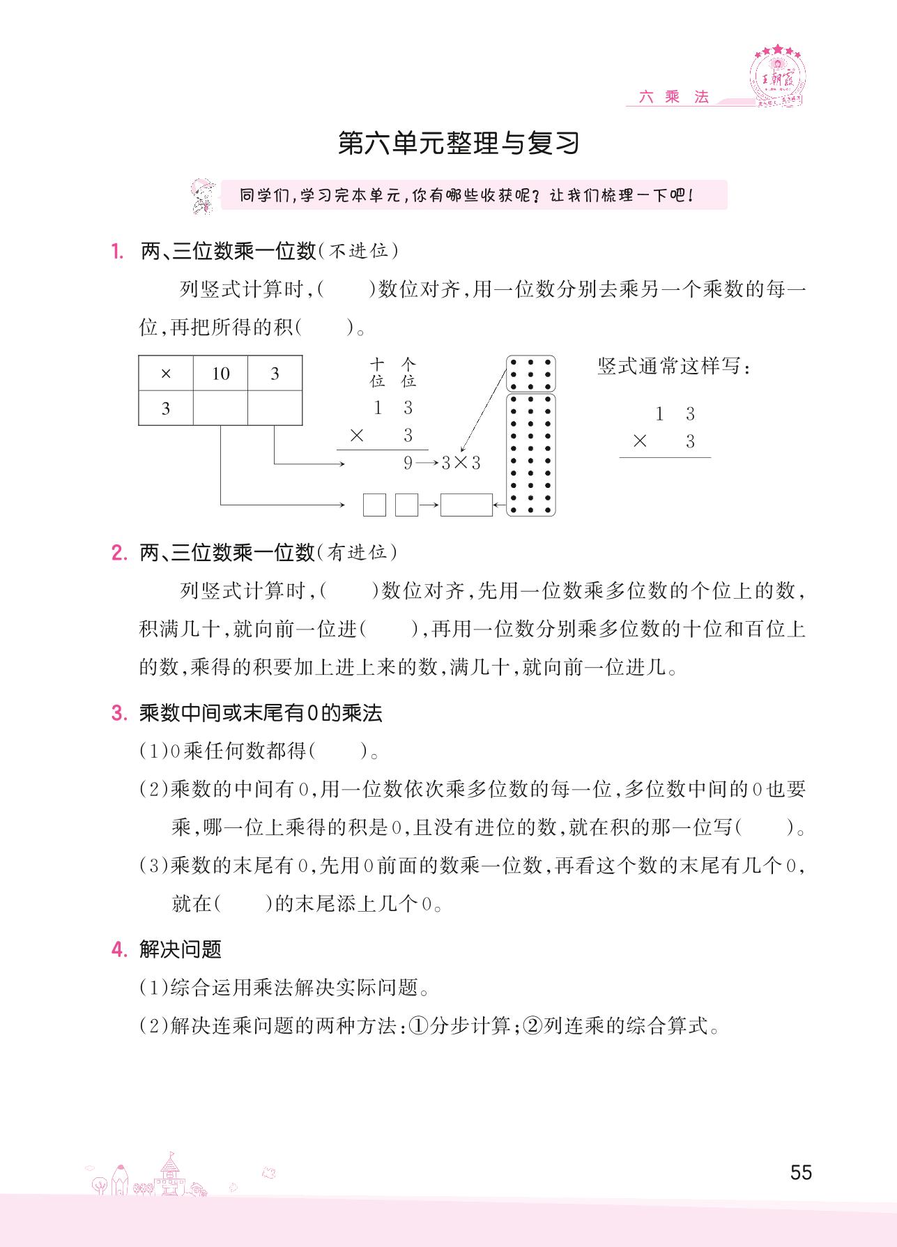 2022上册三年级数学北师版 六 乘法——第六单元整理与复习