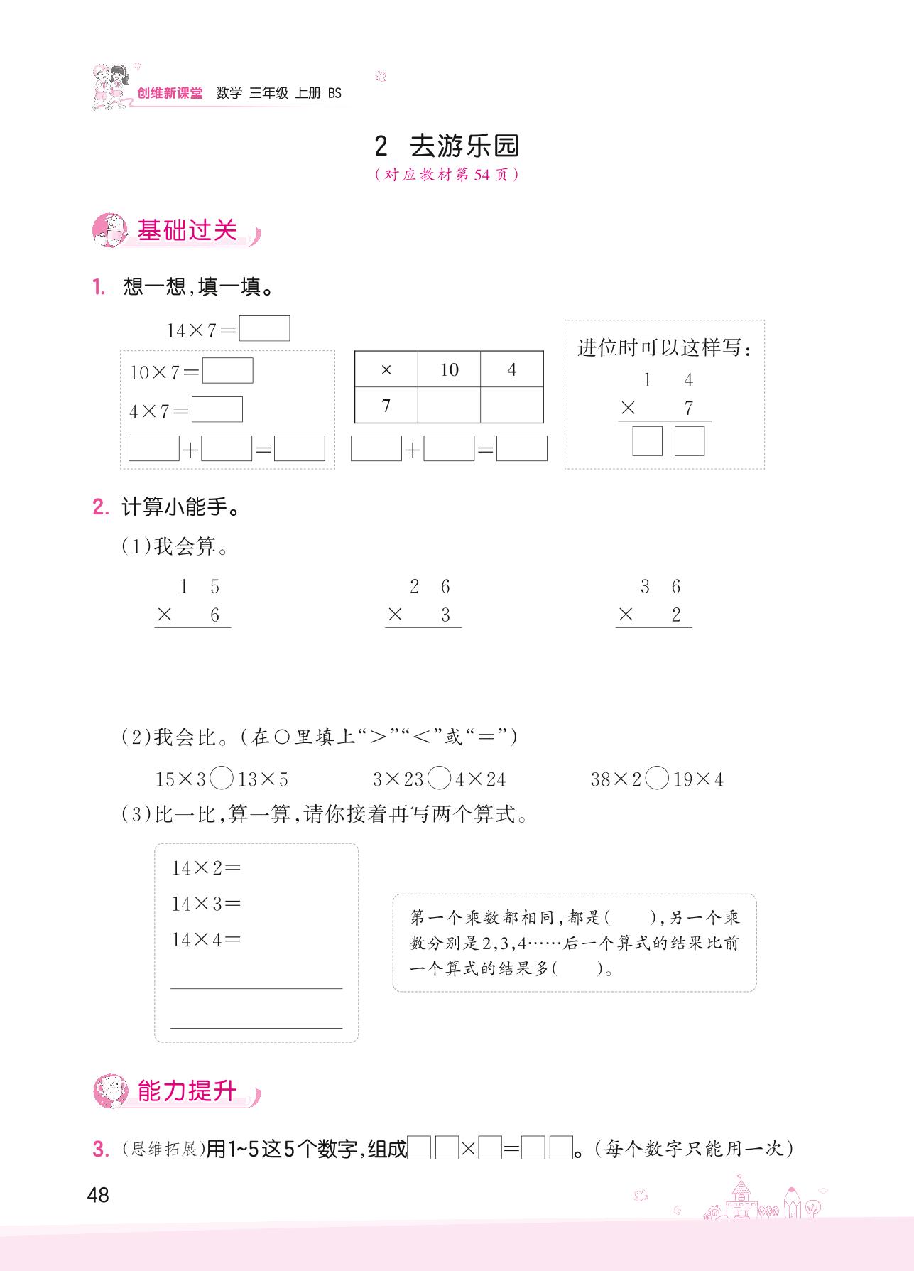 2022上册三年级数学北师版 六 乘法——2 去游乐园