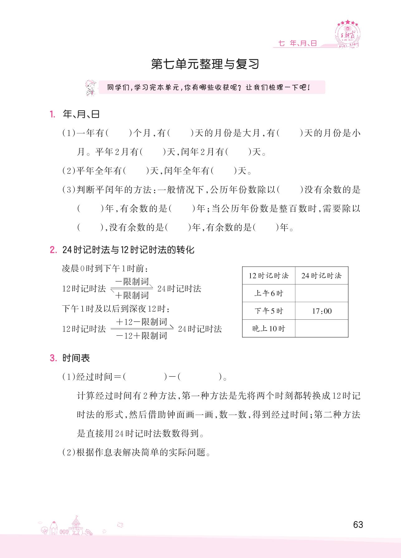 2022上册三年级数学北师版 七 年、月、日——第七单元整理与复习