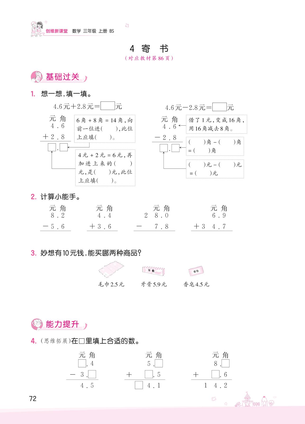 2022上册三年级数学北师版 八 认识小数——4 寄书