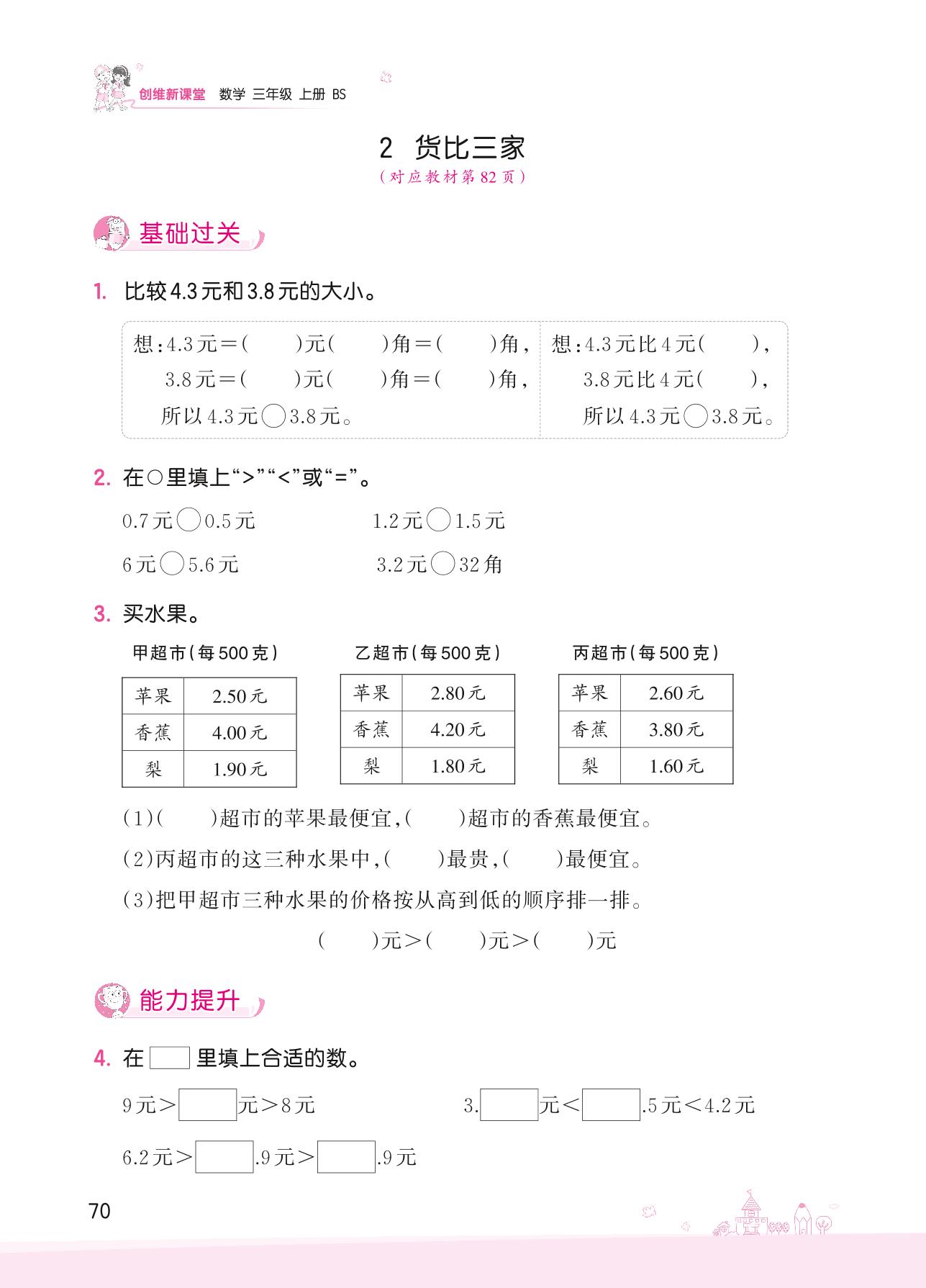 2022上册三年级数学北师版 八 认识小数——2 货比三家