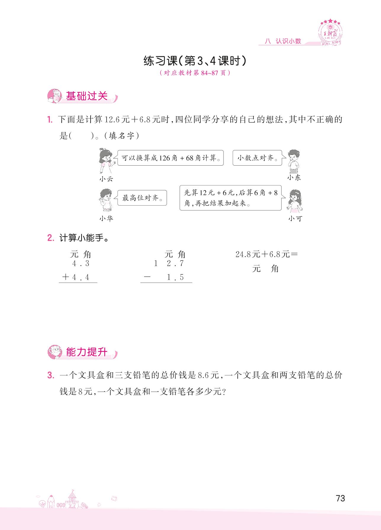 2022上册三年级数学北师版 八 认识小数——练习课(第3、4课时)