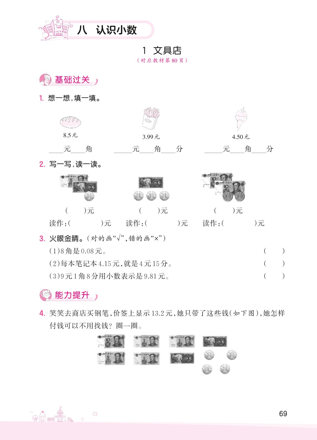 2022上册三年级数学北师版 八 认识小数——1 文具店