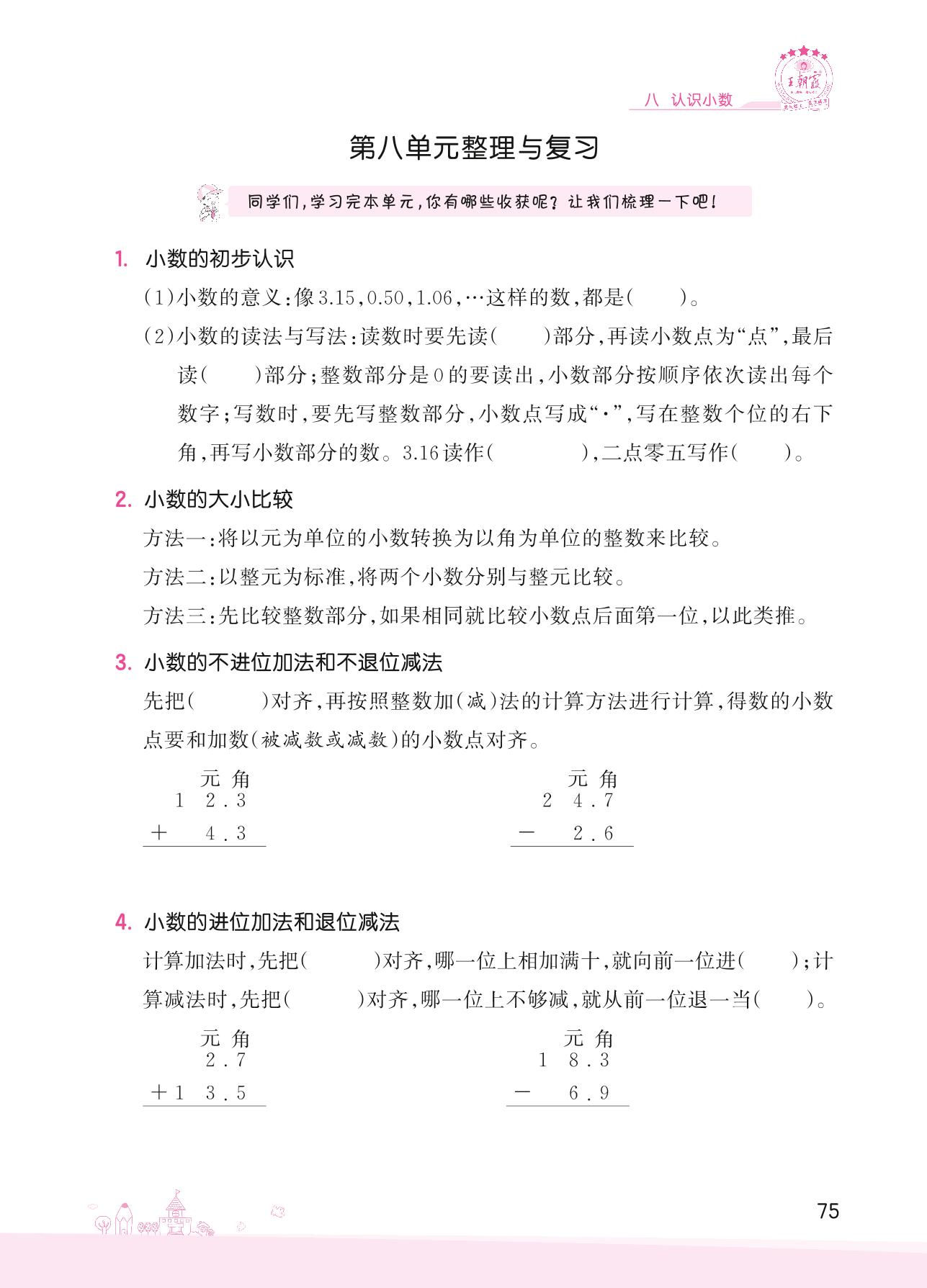 2022上册三年级数学北师版 八 认识小数——第八单元整理与复习