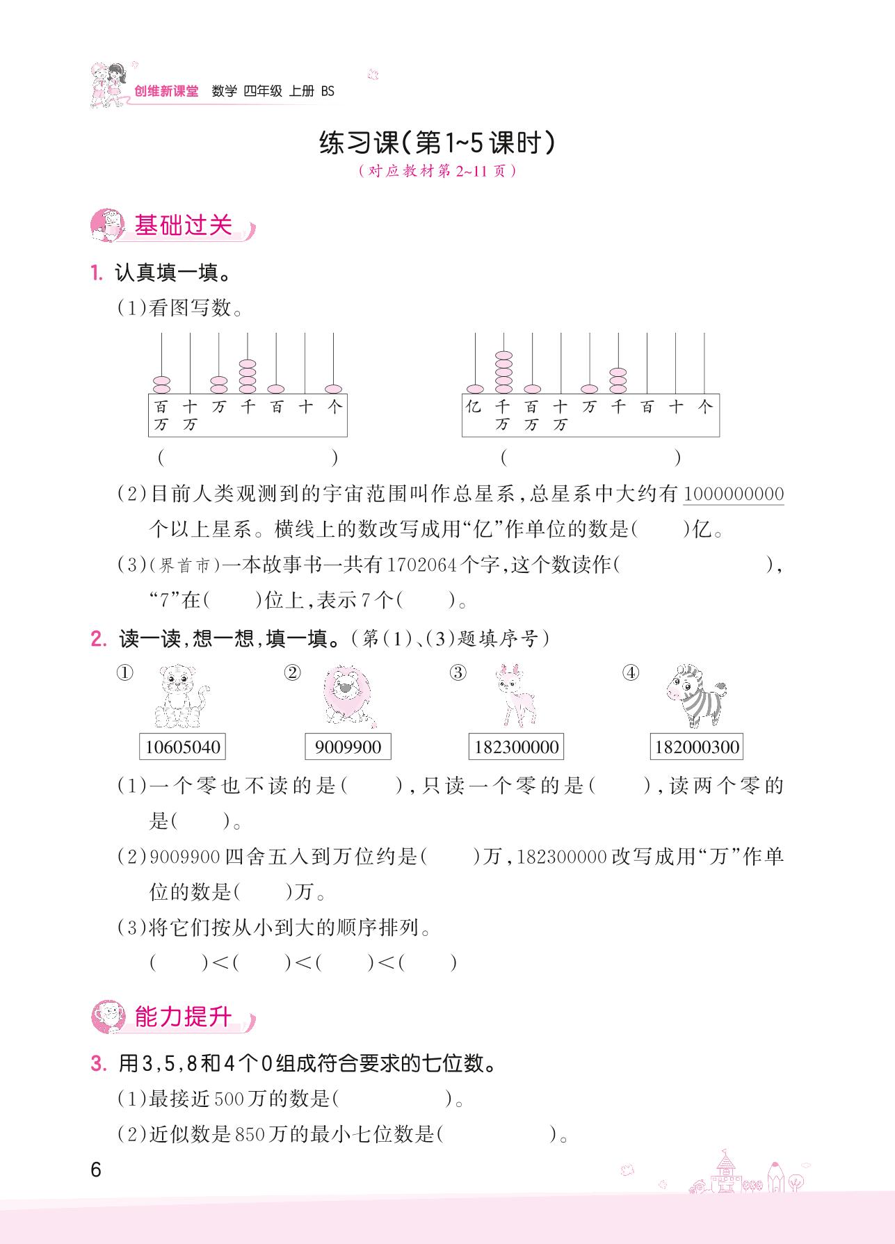 2022上册四年级数学北师版 一 认识更大的数——练习课(第1~5课时)