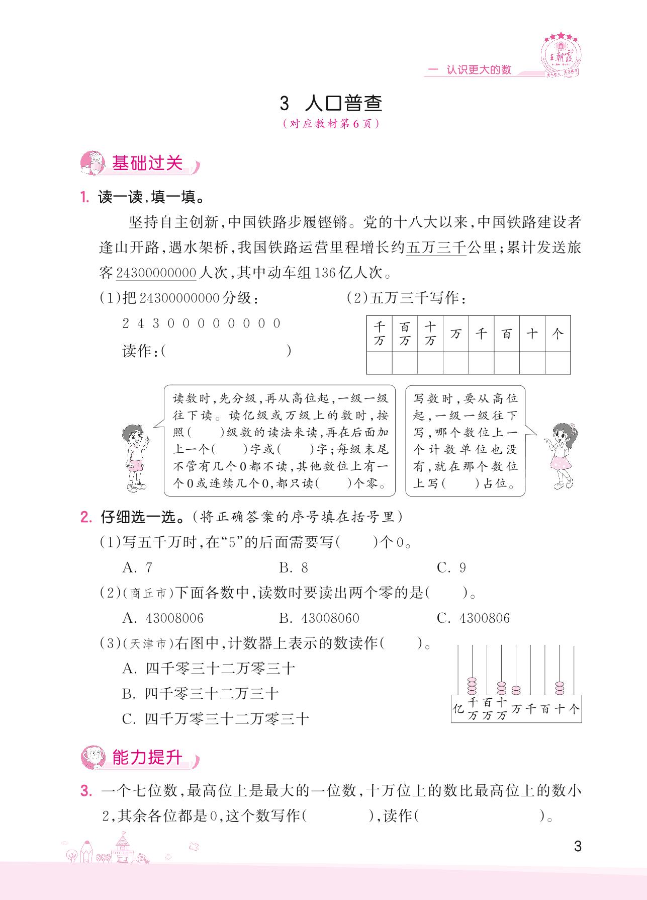 2022上册四年级数学北师版 一 认识更大的数——3 人口普查