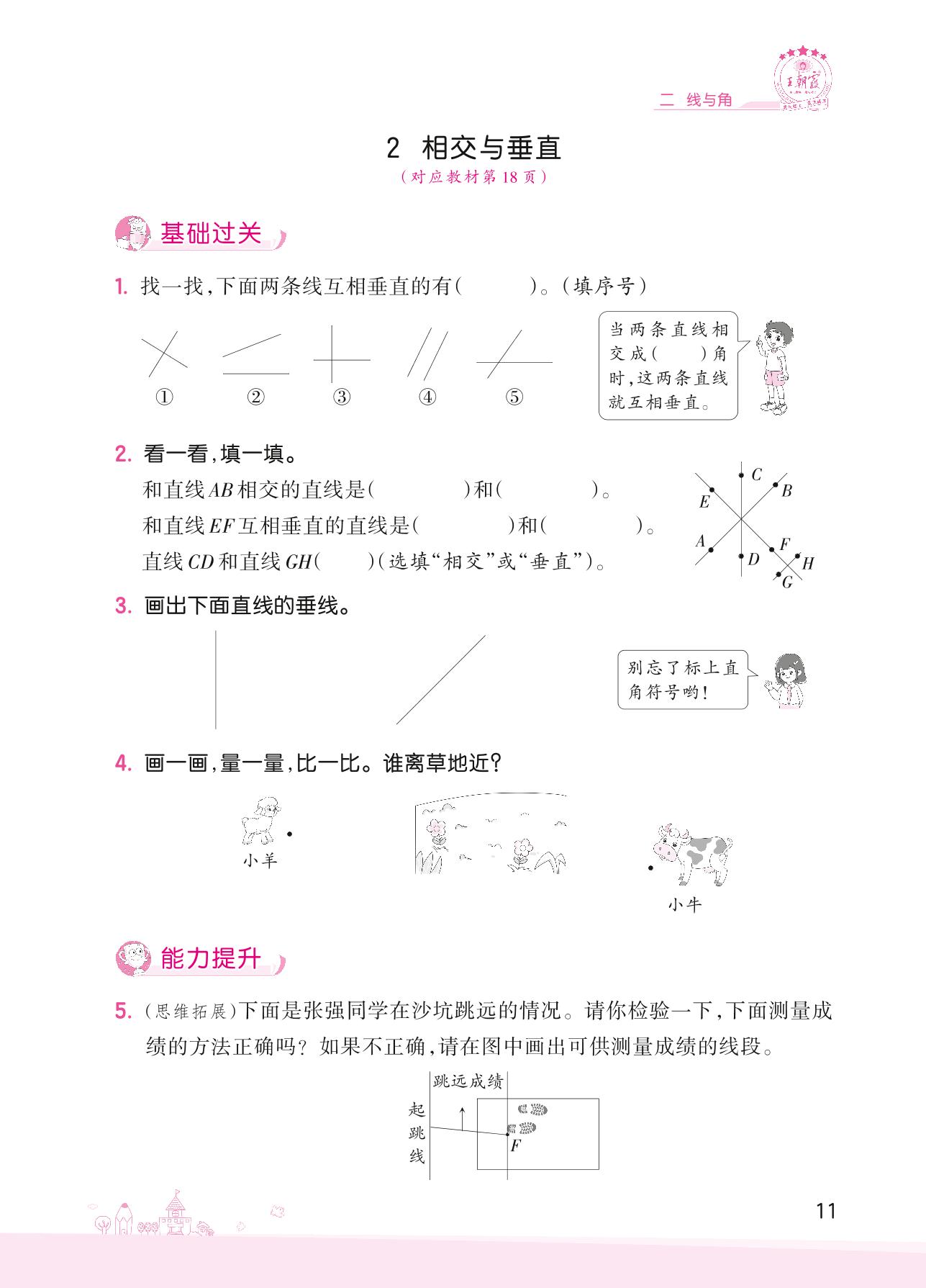 2022上册四年级数学北师版 二 线与角——2 相交与垂直