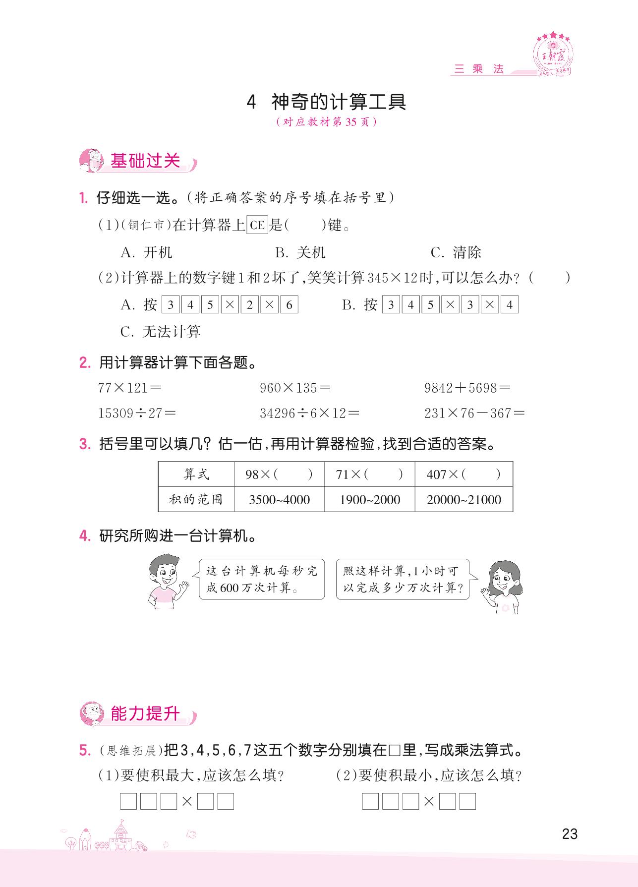 2022上册四年级数学北师版 三 乘法——4 神奇的计算工具