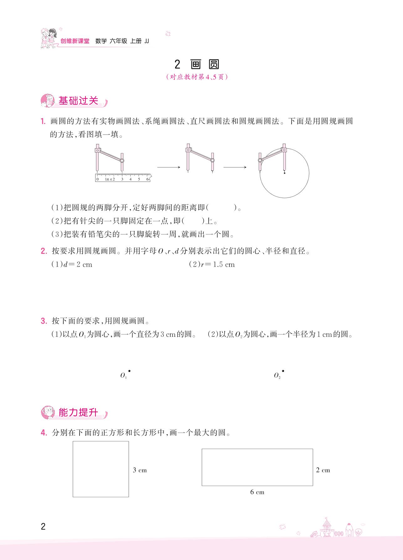 2022上册六年级数学冀教版 一 圆和扇形——2 画圆