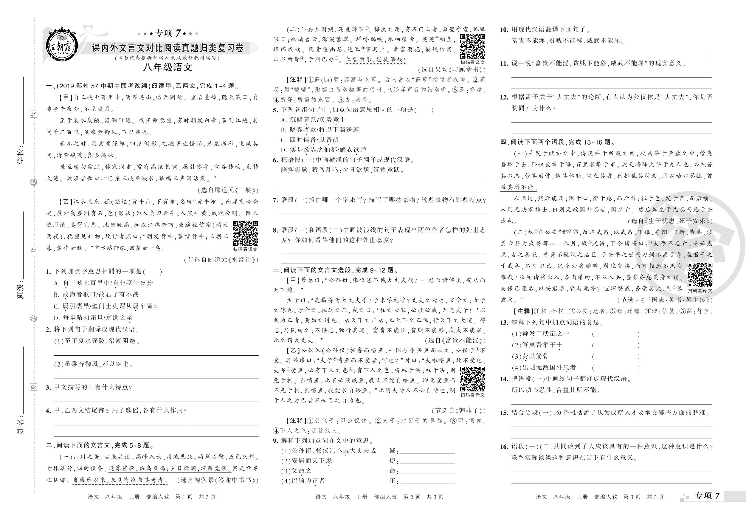 王朝霞期末专项卷——课内外文言文对比阅读、古诗词阅读真题归类复习八年级上册语文(人教版)_R21080232537【0】
