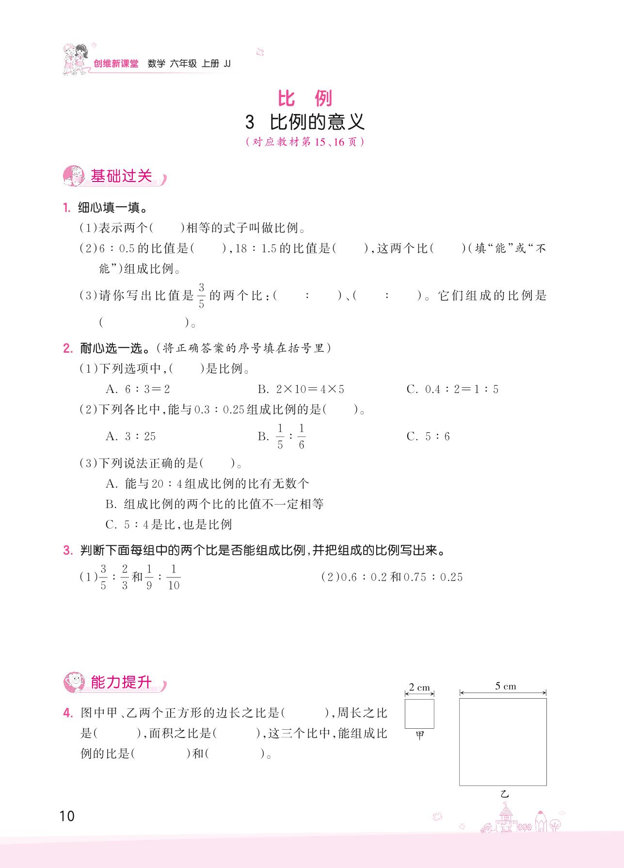 2022上册六年级数学冀教版 二 比和比例——3 比例的意义