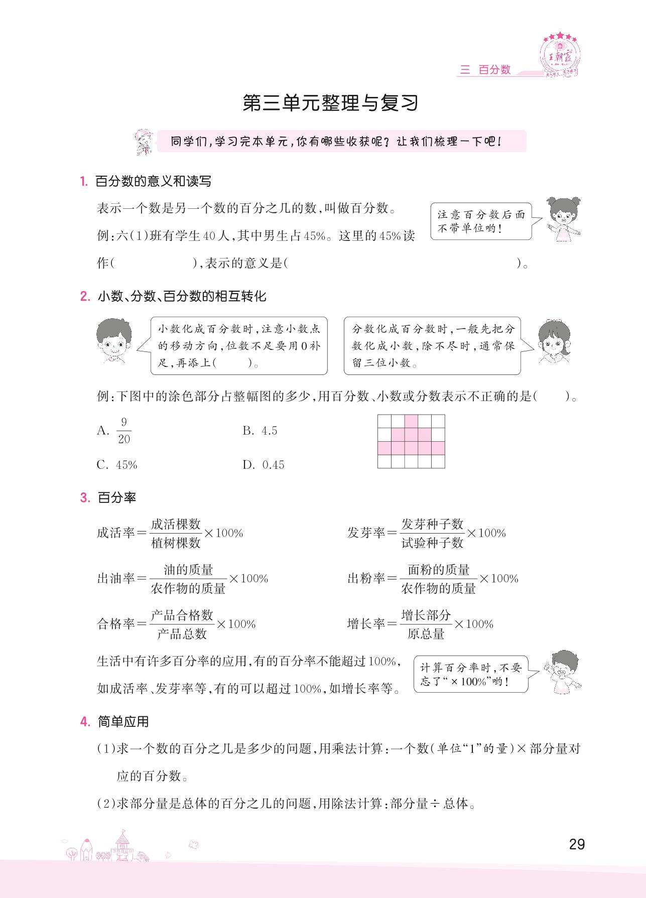 2022上册六年级数学冀教版 三 百分数——第三单元整理与复习