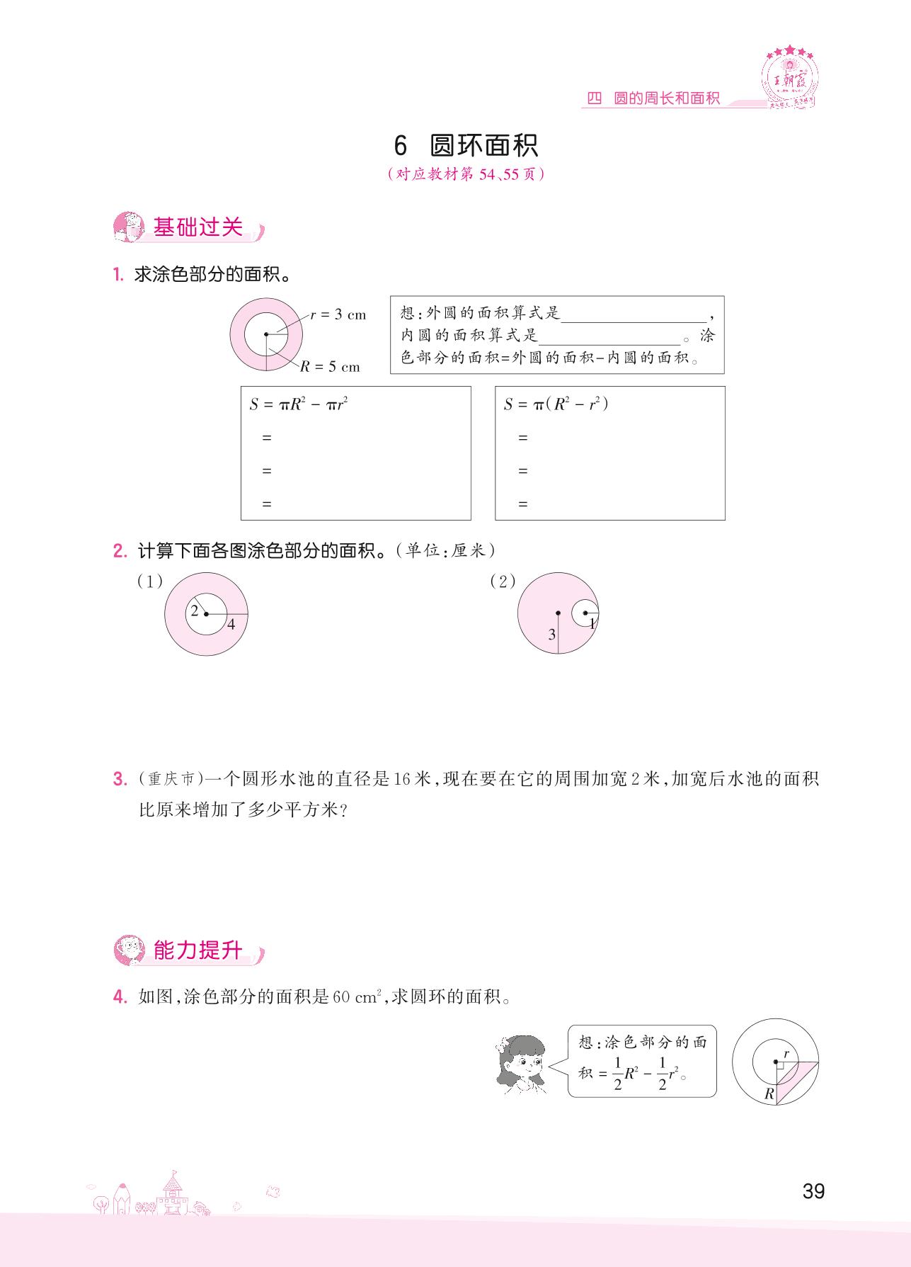 2022上册六年级数学冀教版 四 圆的周长和面积——6 圆环面积