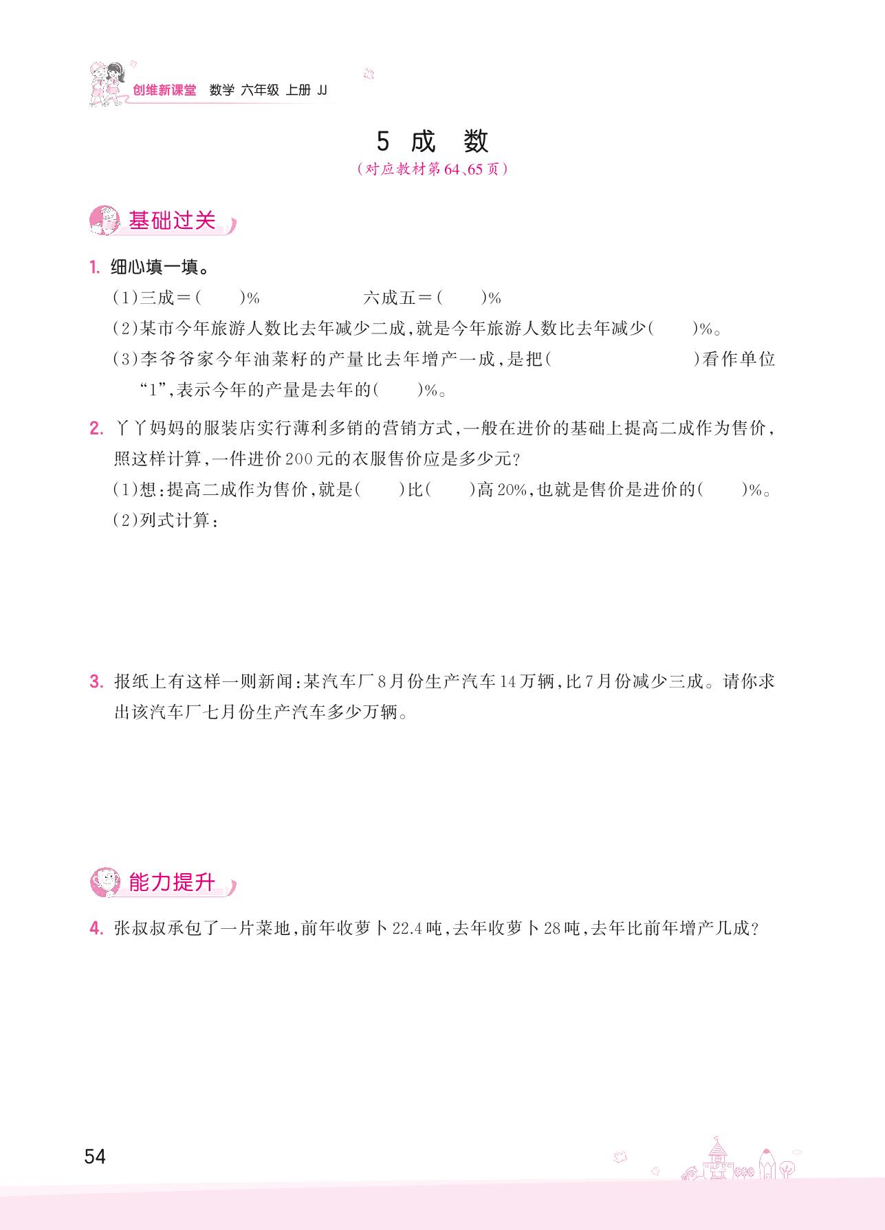 2022上册六年级数学冀教版 五 百分数的应用——5 成数
