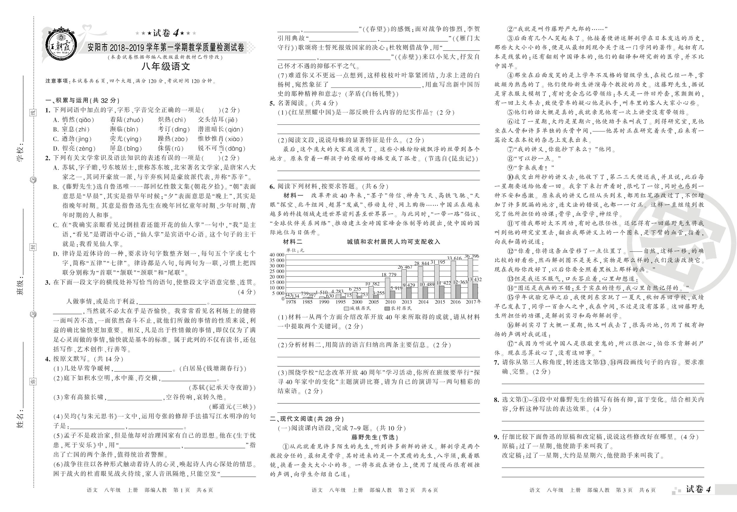 2018-2019学年第一学期安阳市八年级语文试卷(人教版)【4】