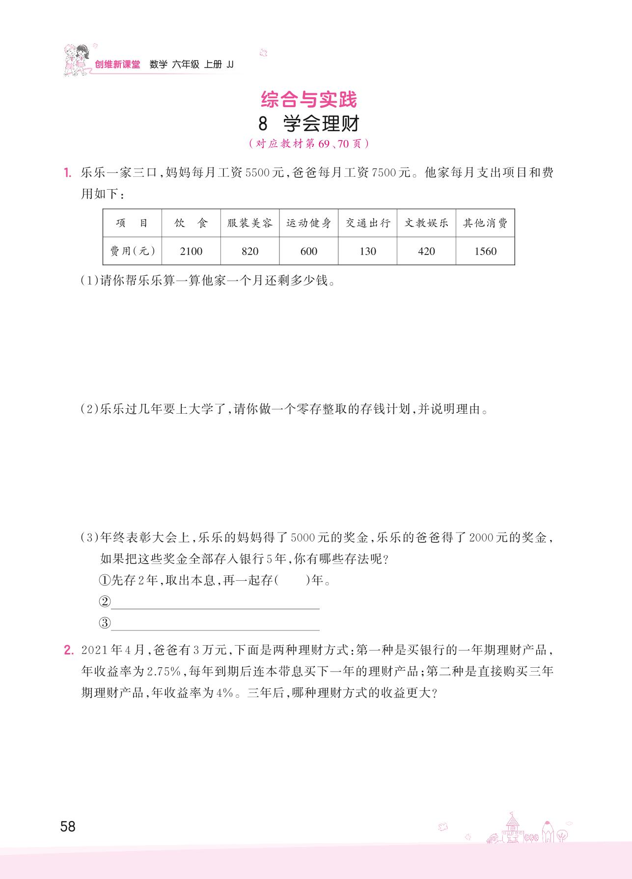 2022上册六年级数学冀教版 五 百分数的应用——8 学会理财