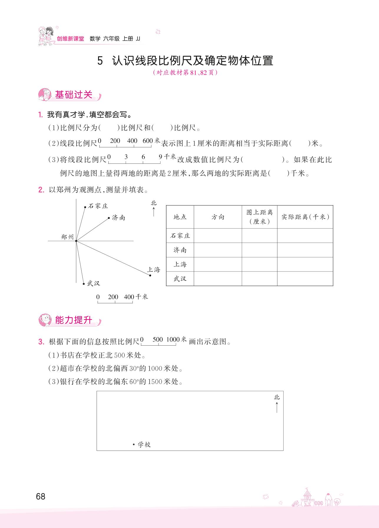2022上册六年级数学冀教版 六 比例尺——5 认识线段比例尺及确定物体位置