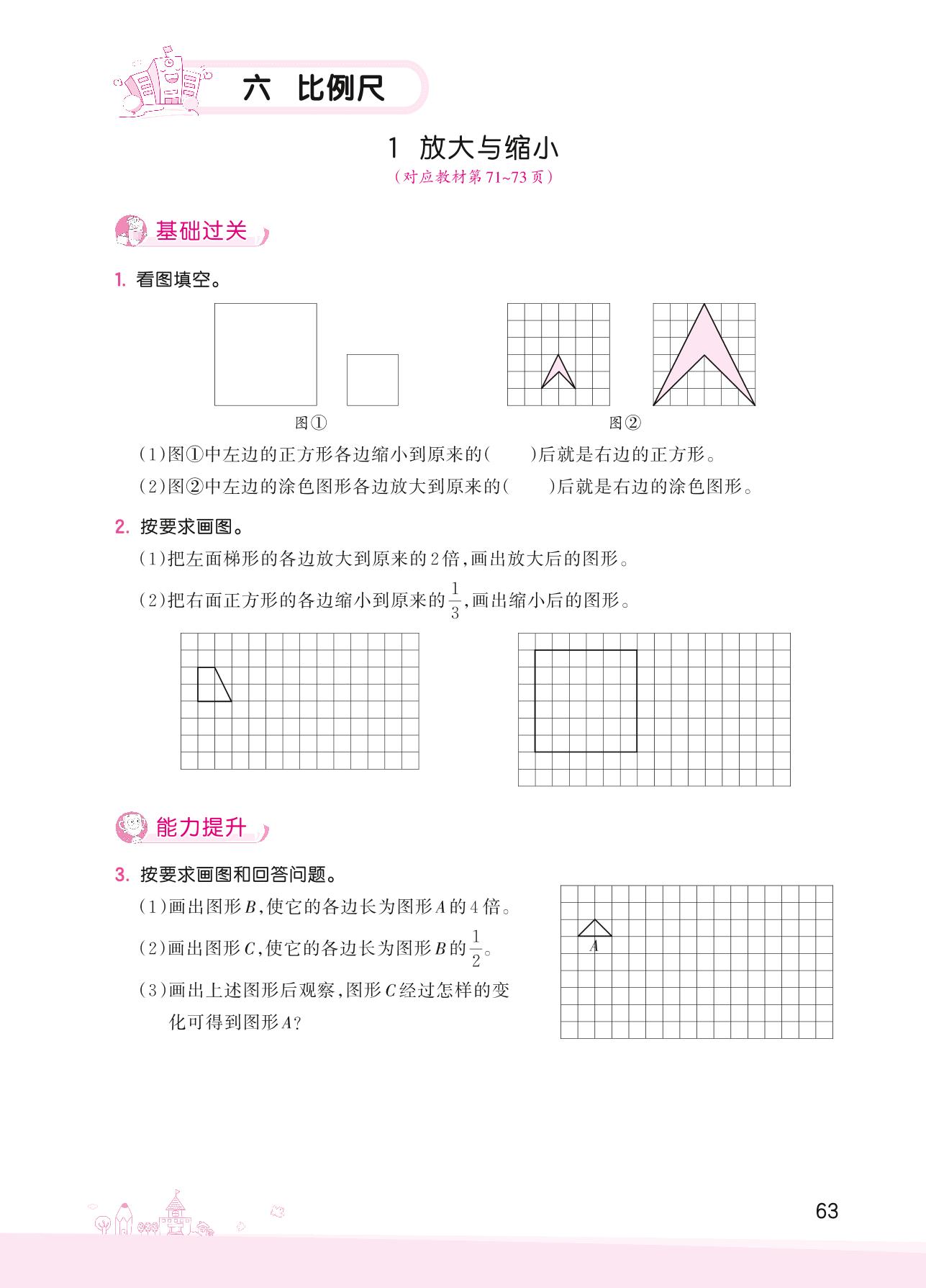 2022上册六年级数学冀教版 六 比例尺——1 放大与缩小