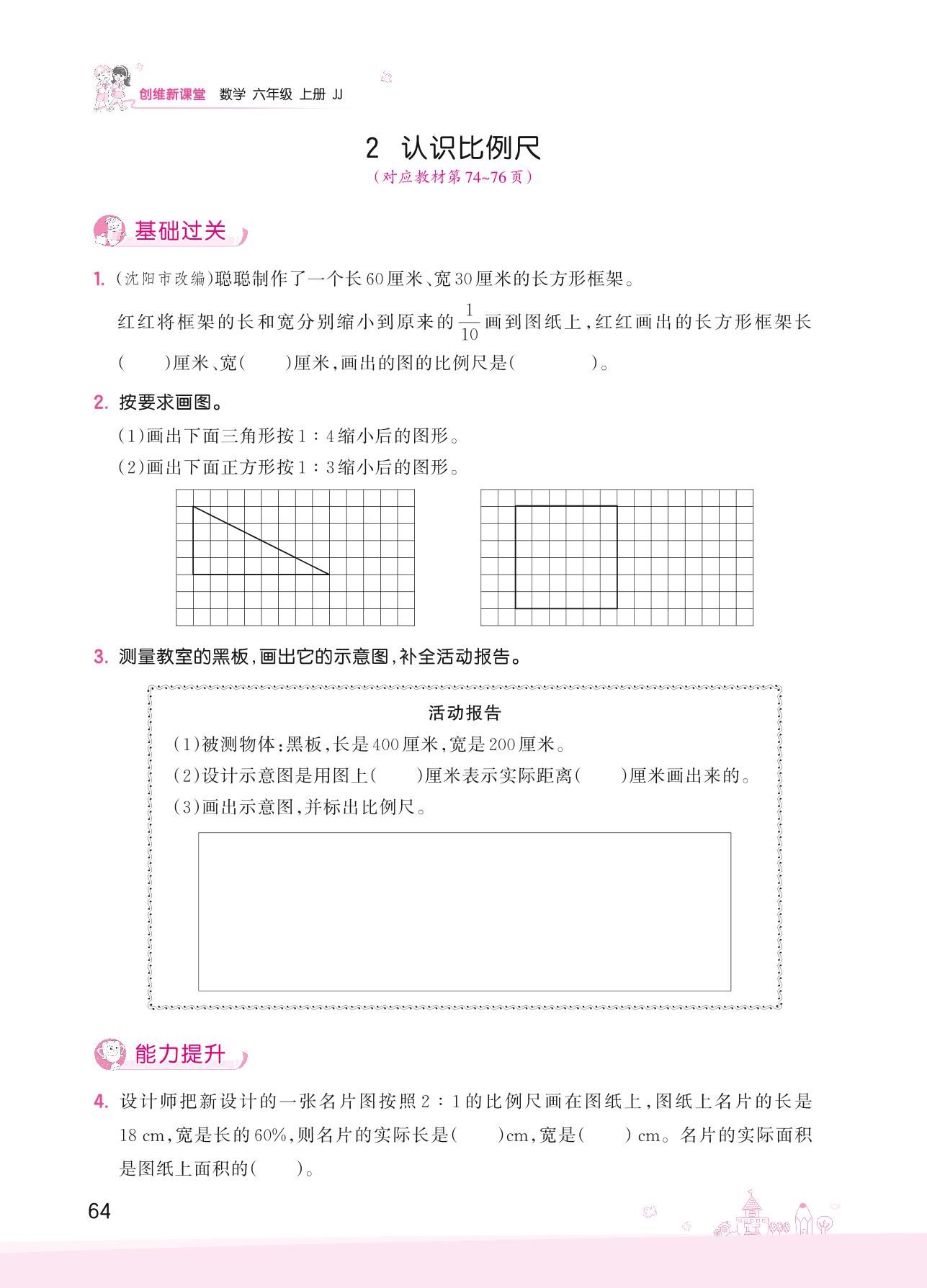 2022上册六年级数学冀教版 六 比例尺——2 认识比例尺