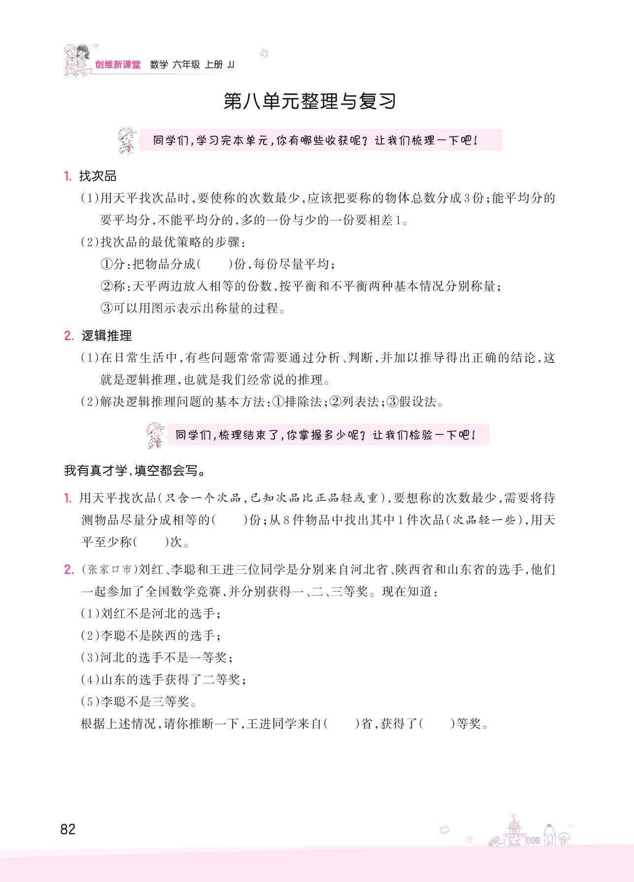 2022上册六年级数学冀教版 八 探索乐园——第八单元整理与复习