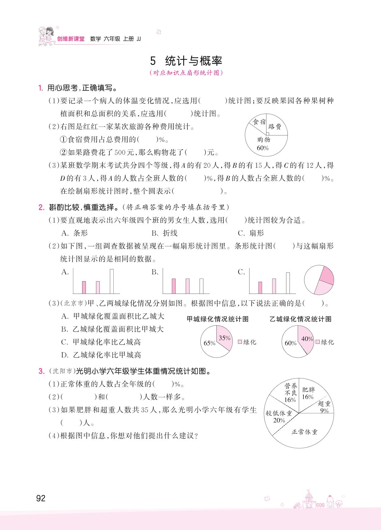 2022上册六年级数学冀教版 整理与评价——5 统计与概率