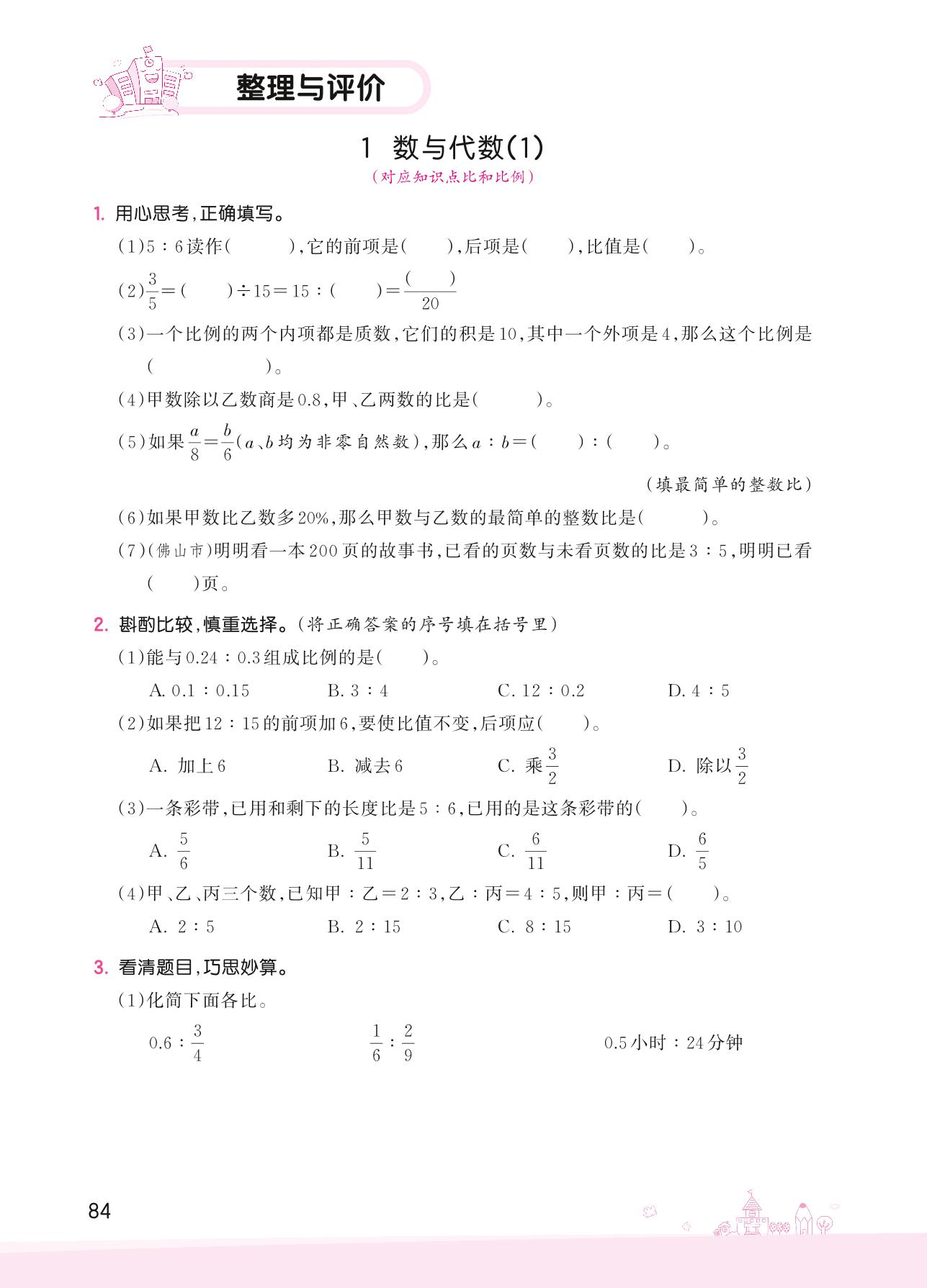 2022上册六年级数学冀教版 整理与评价——1 数与代数(1)