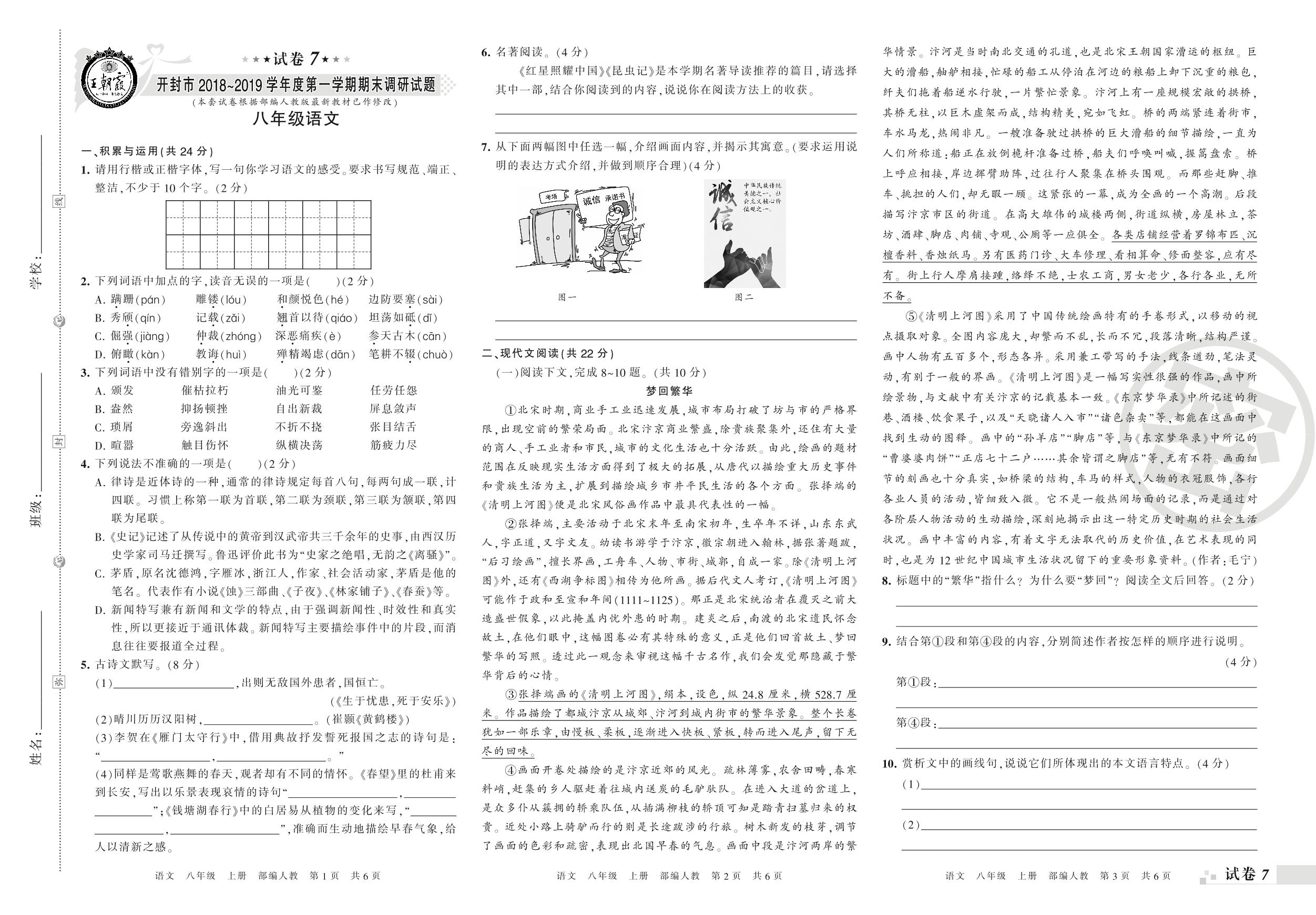 2018-2019学年第一学期开封市八年级语文试卷(人教版)【7】