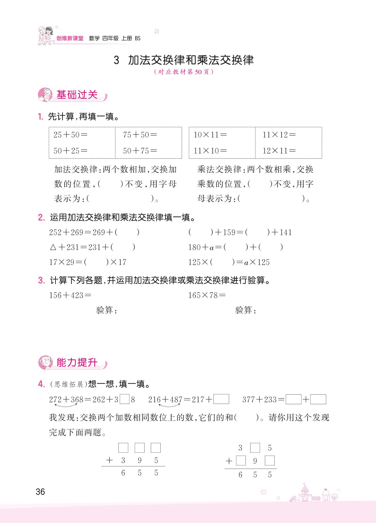 2022上册四年级数学北师版 四 运算律——3 加法交换律和乘法交换律