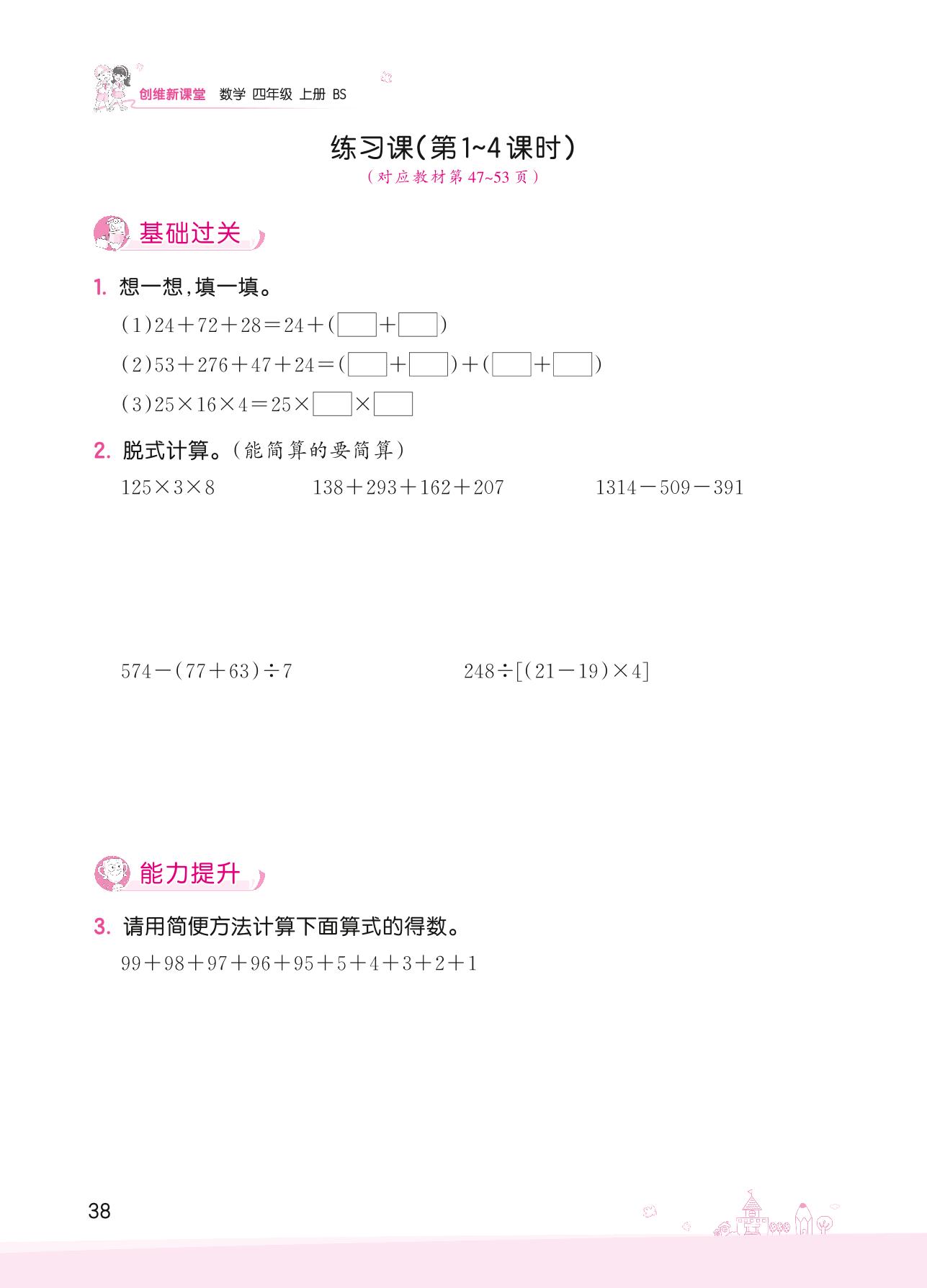 2022上册四年级数学北师版 四 运算律——练习课(第1~4课时)
