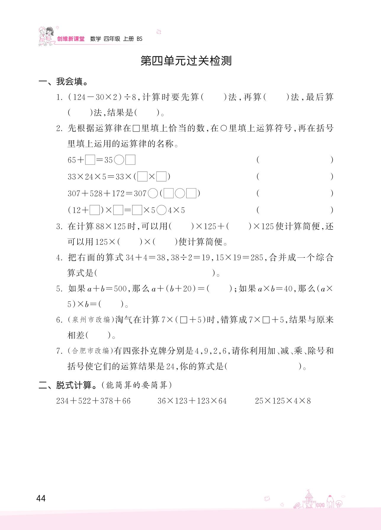 2022上册四年级数学北师版 四 运算律——第四单元过关检测