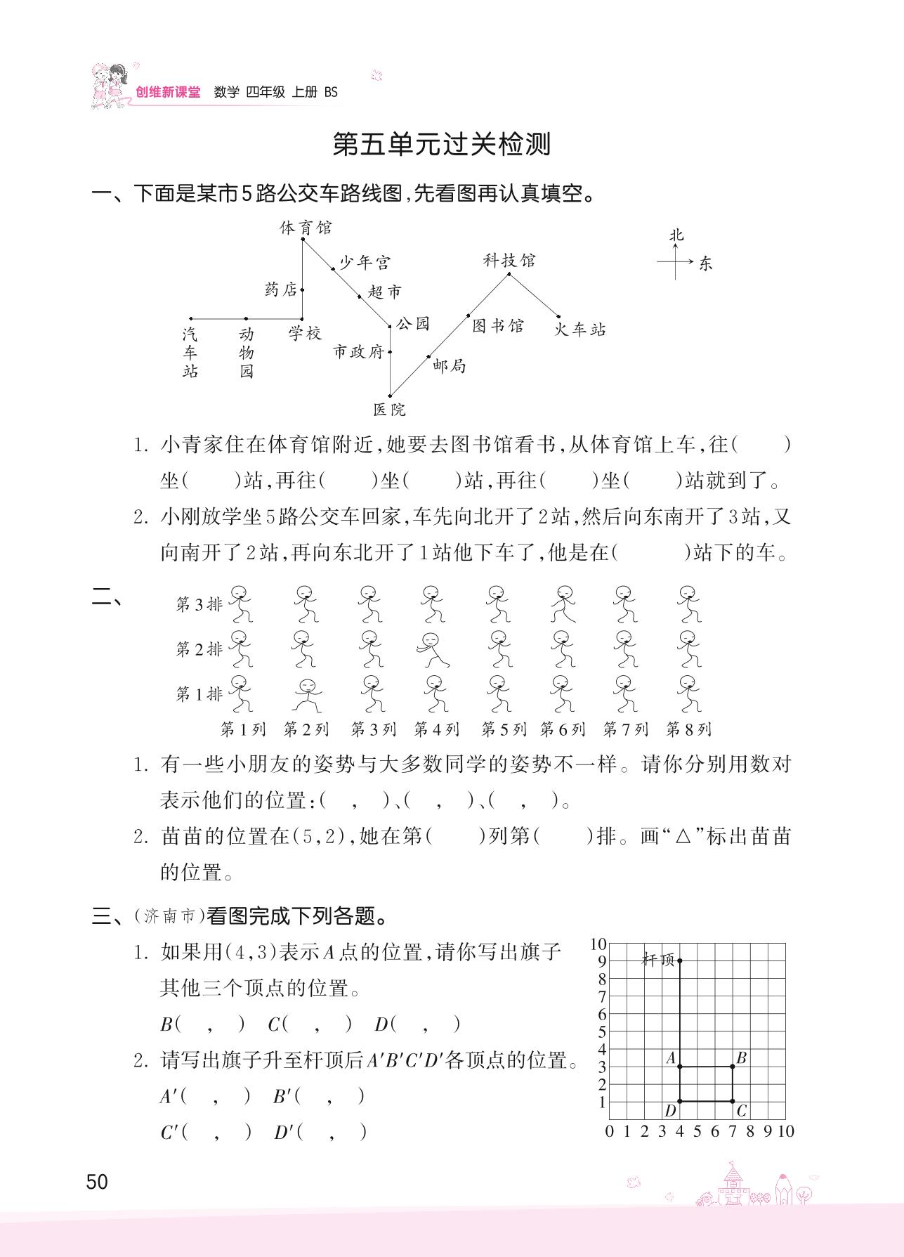 2022上册四年级数学北师版 五 方向与位置——第五单元过关检测