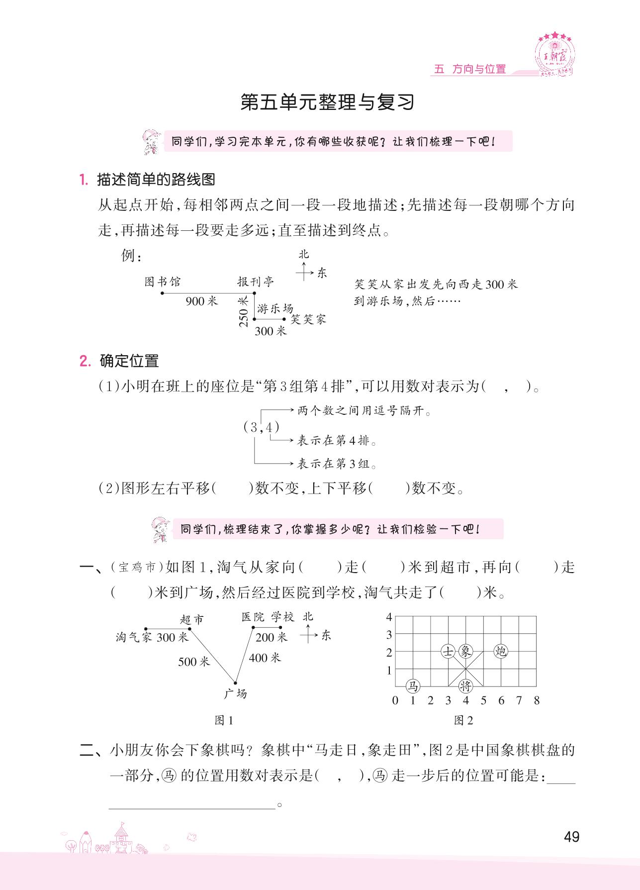 2022上册四年级数学北师版 五 方向与位置——第五单元整理与复习