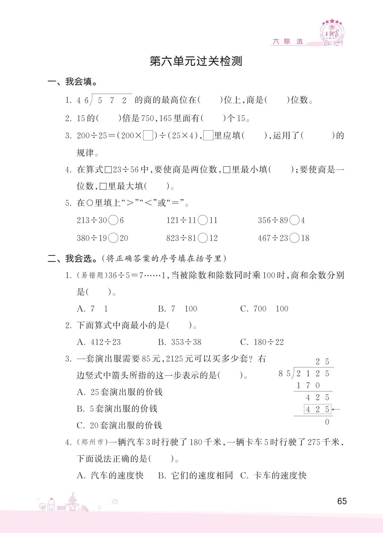 2022上册四年级数学北师版 六 除法——第六单元过关检测