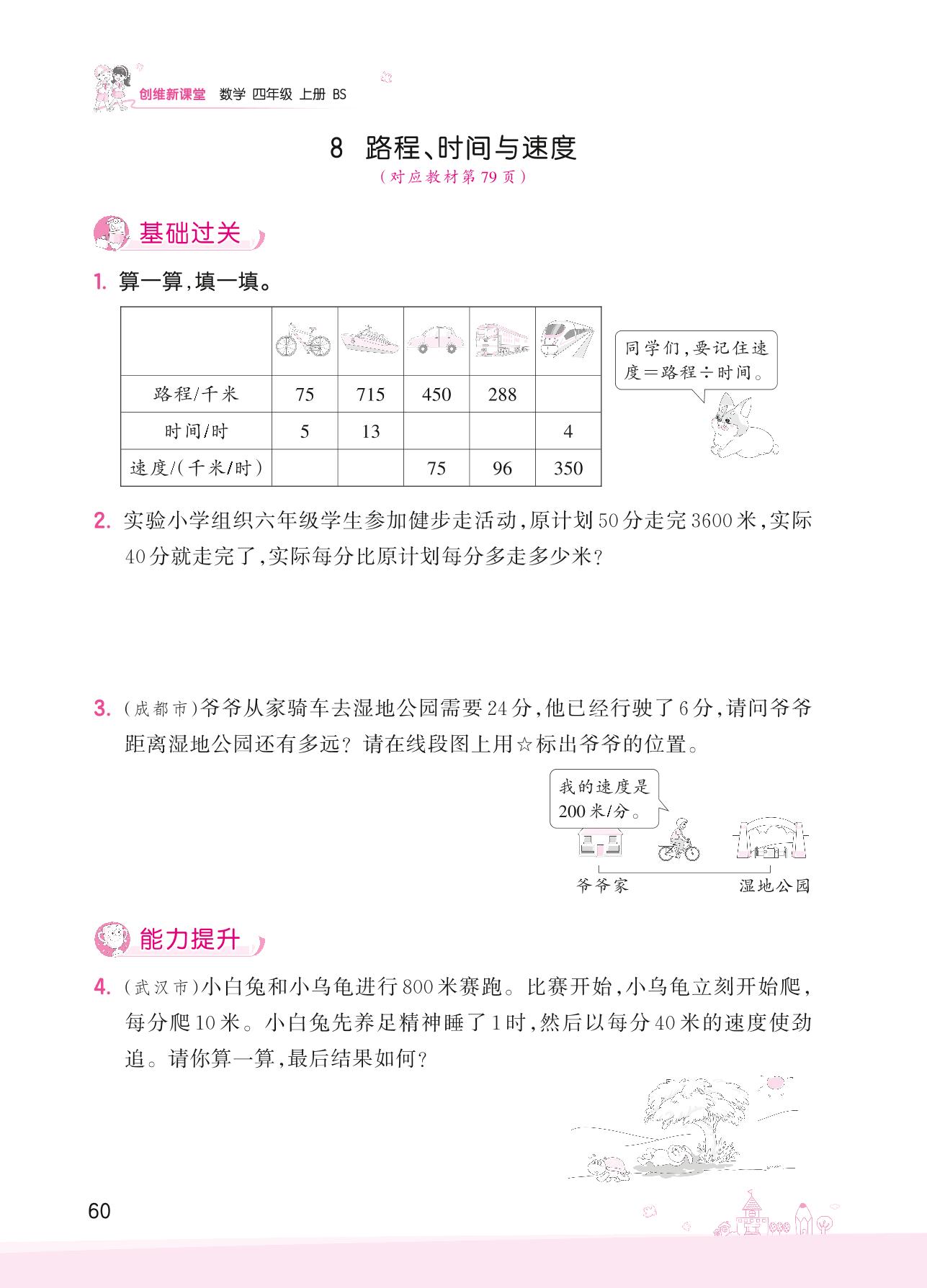2022上册四年级数学北师版 六 除法——8 路程、时间与速度