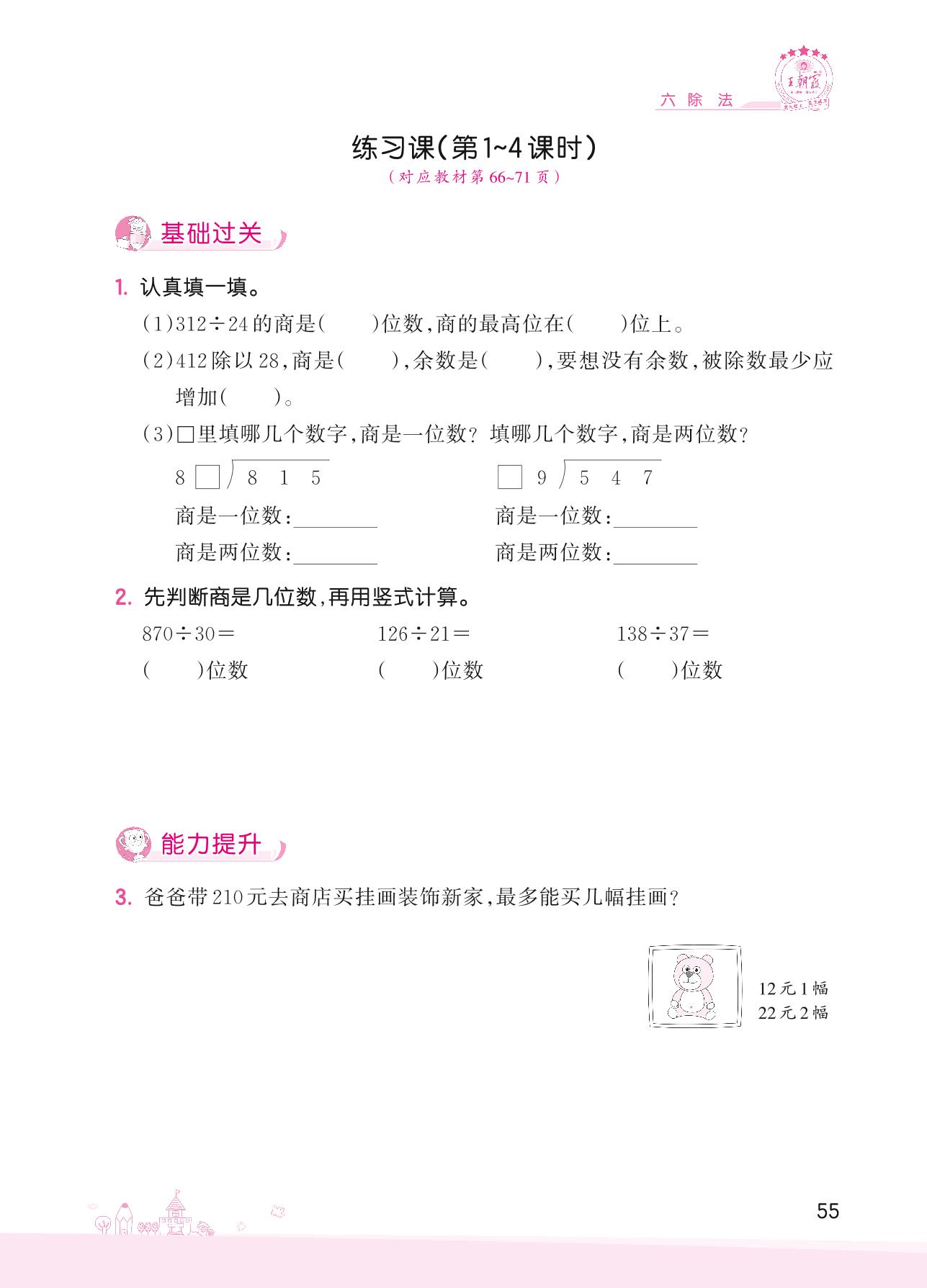 2022上册四年级数学北师版 六 除法——练习课(第1~4课时)