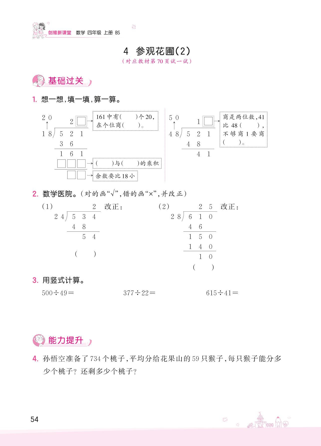 2022上册四年级数学北师版 六 除法——4 参观花圃(2)